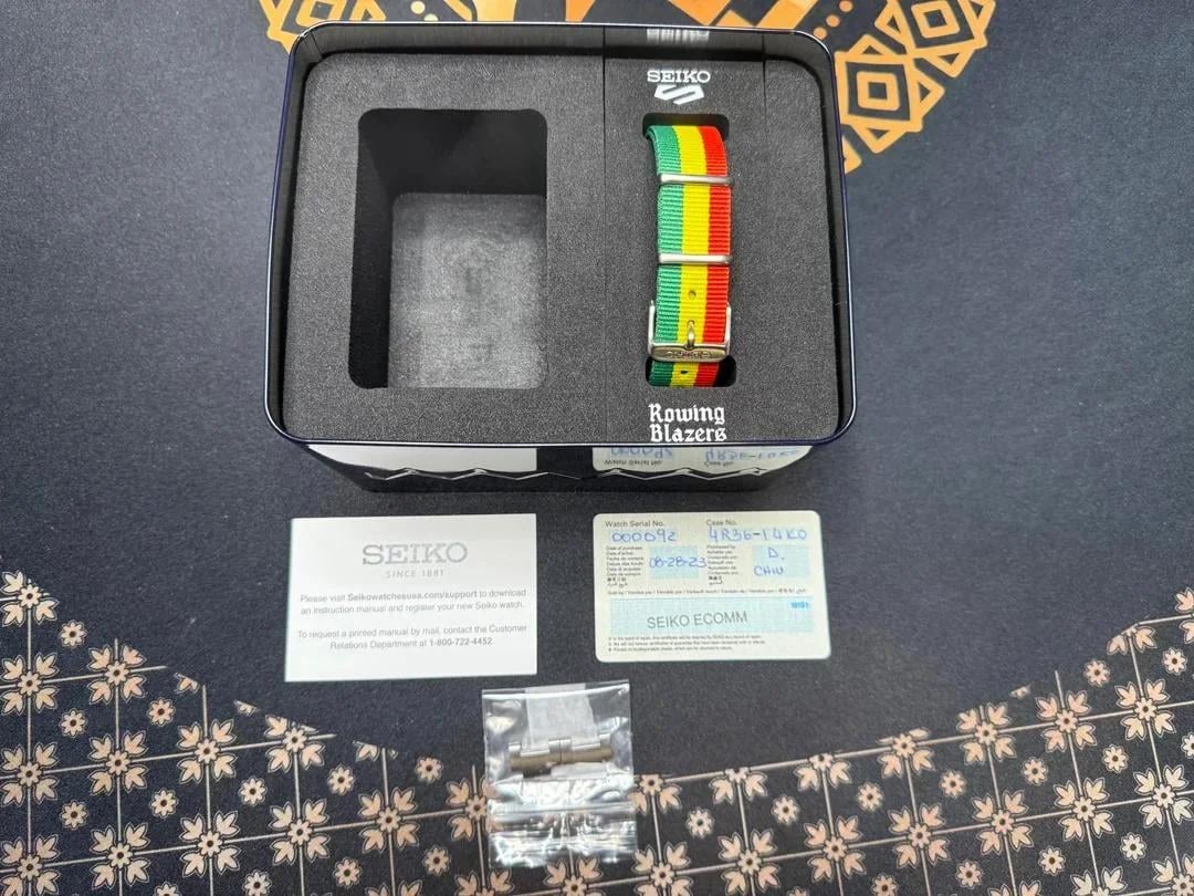 Hello everyone, I’m selling my Seiko x Rowing Blazers dressKX limited edition (SRPJ69) watch today * The overall condition is good. There are some hairline scratches present throughout the watch, as shown in the pictures above * It comes with all the following contents: box & warranty card * I’m asking for $300 FIRM with $30 shipping CONUS * For anyone located in Illinois, I’d be happy to arrange for local pickups and avoid shipping the watch * I accept PayPal F&F, Zelle, Venmo, or bank transfers * Please buy with confidence! I have plenty of positive feedback on my eBay store (linked in my Reddit bio), & I want to maintain a good reputation on this platform to continue selling watches * Feel free to message me with any questions, comments, or concerns!