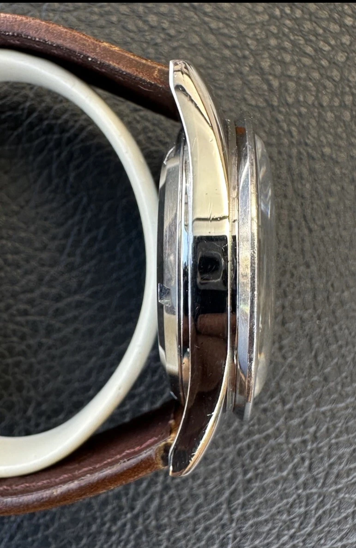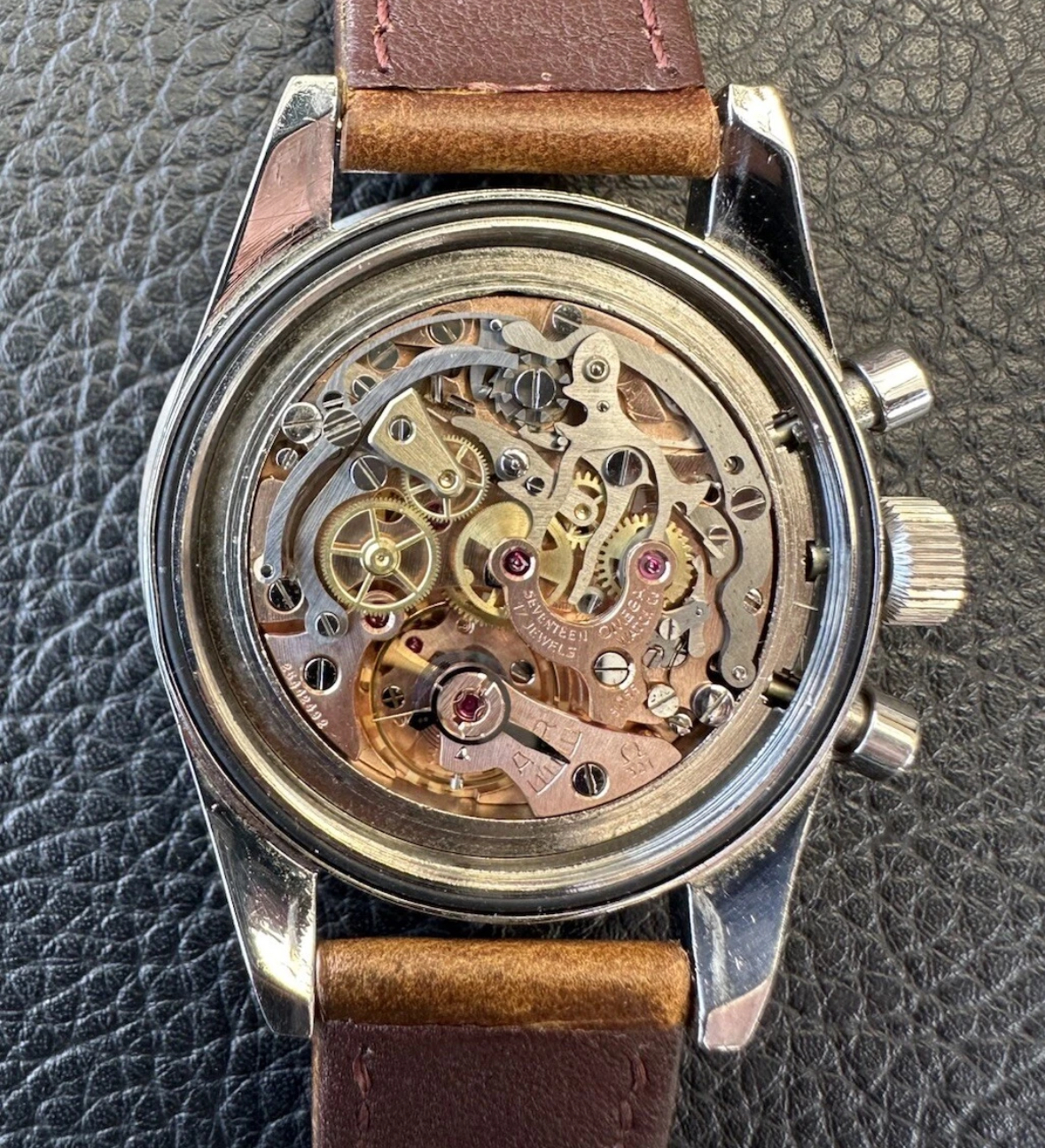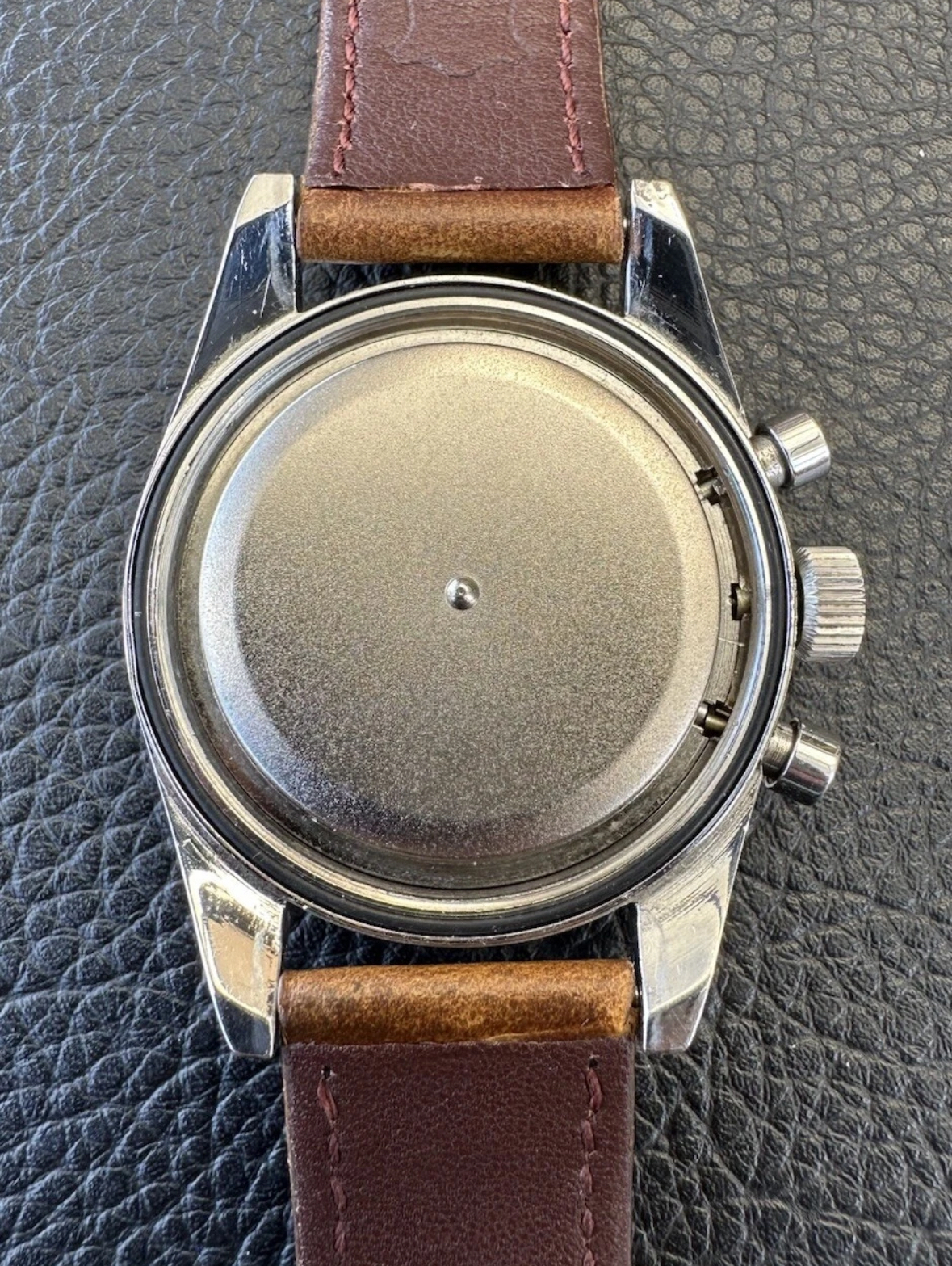 The case has been obviously polished in the past but it’s still presentable. The movement is very clean and was serviced last year. The dial and hands have been relumed by James Hyman AKA thealchemistrelumer, other than that and the modern replacement crown the watch is in all original condition.