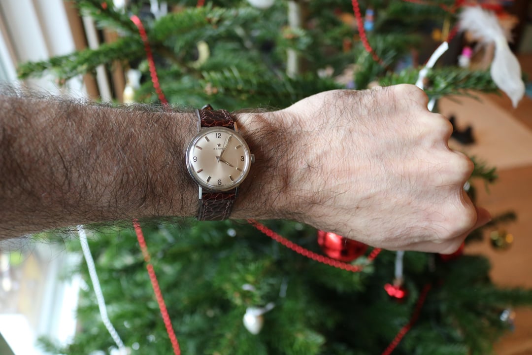I'm am selling a vintage Zenith I bought off ebay about 4-5 years ago from "orangeclockwork007". The case back has the number 929A601 on it. I don't know much about it, other than it's a manual wind zenith from the 1950s or 1960s. I've worn it about 2 or 3 months in total. I'm selling it because the only reason I wear it is to keep the movement moving :). This is a small watch, I have a photo of it on my 16cm / 6.25inch wrist. Classic size and classic watch. I am asking USD 290 / EUR 250. I will sell it with 3 suede straps (2 barely used and one unused). The leather strap will not come with it. Specs: * Diameter: 31.0mm (self measured, so this may be a bit off). * Lug to lug: 37.1mm (self measured, so this may be a bit off). * Lug width: 16mm * Movement: Unknown. * Crystal: Acrlyic. Condition: * Case: Some minor scuffs. IMO good considering this watch is from the 1950s or 1960s. * Case Back: Some minor scuffs * Crystal: Some minor scratches, probably pollywatch will remove. The minor scratches are only visible if you look for them closely, I do not notice when checking the time. * Dial: Good, I don't see any dust or scratches. * Movement: +7 seconds per day as measured with watch accuracy meter. Wearing on wrist I've always had good time. * Strap+buckle: When I bought it i got something crappy. I'm selling it with a blue suede strap I've worn it a few weeks on, a red suede strap I've worn it a few weeks on and an unused teal suede strap. * Lume: It has lume but it only doesn't last long, you are not buying this watch for it's lume :).