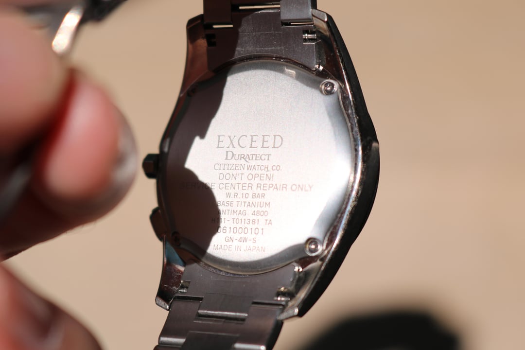 Exceed is the luxery brand from Citizen only available in Japan. This is a highly accurate quartz movement. It has radio control (only works in Japan). I set it manually, and it has a function to quickly change the timezone and a perpetual calendar. I set it a few years ago and have never set it again (I use the timezone function to change for summer time). It's a solar quartz movement. I'm selling it because I NEVER wear it. I'm trying to thin out my watch collection so I've got a few for sale (see timestamp photo). Since I got it, I've worn it a few times only. I bought it second hand a few years ago. I am asking USD 230 / EUR 175. PayPal or bank transfer. Specs (as measured by me, so may be a couple mm off): * Case Diameter: 37.5mm * Lug width: 19mm * Lug to lug: 47mm * Case Height: 8.8mm * Movement: Citizen H111 more info in next comment...