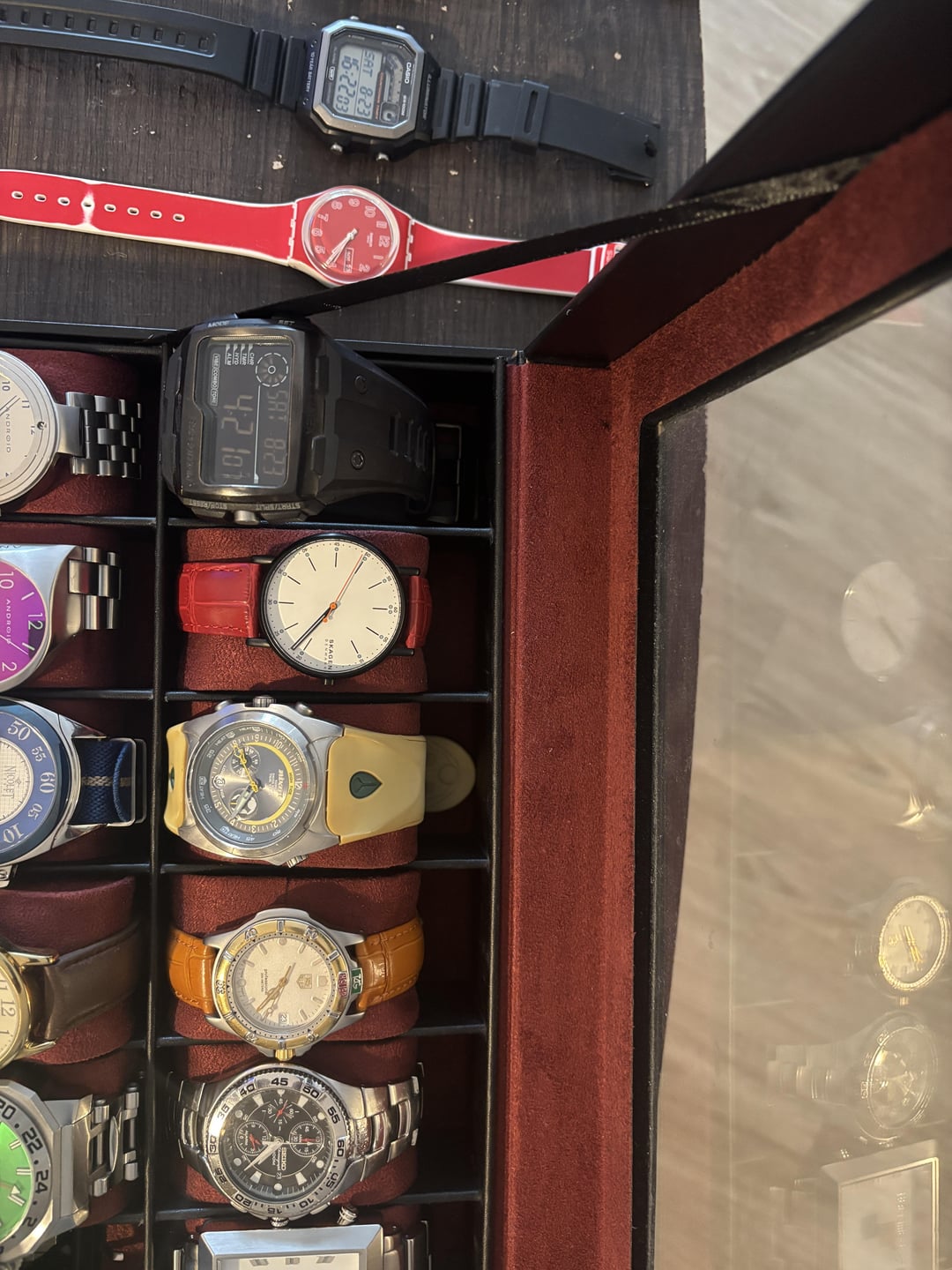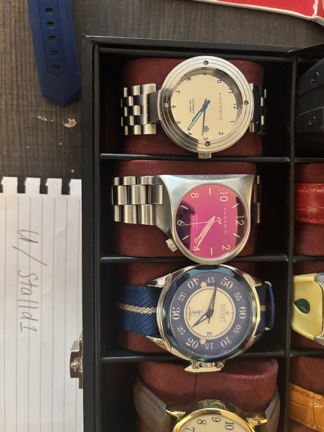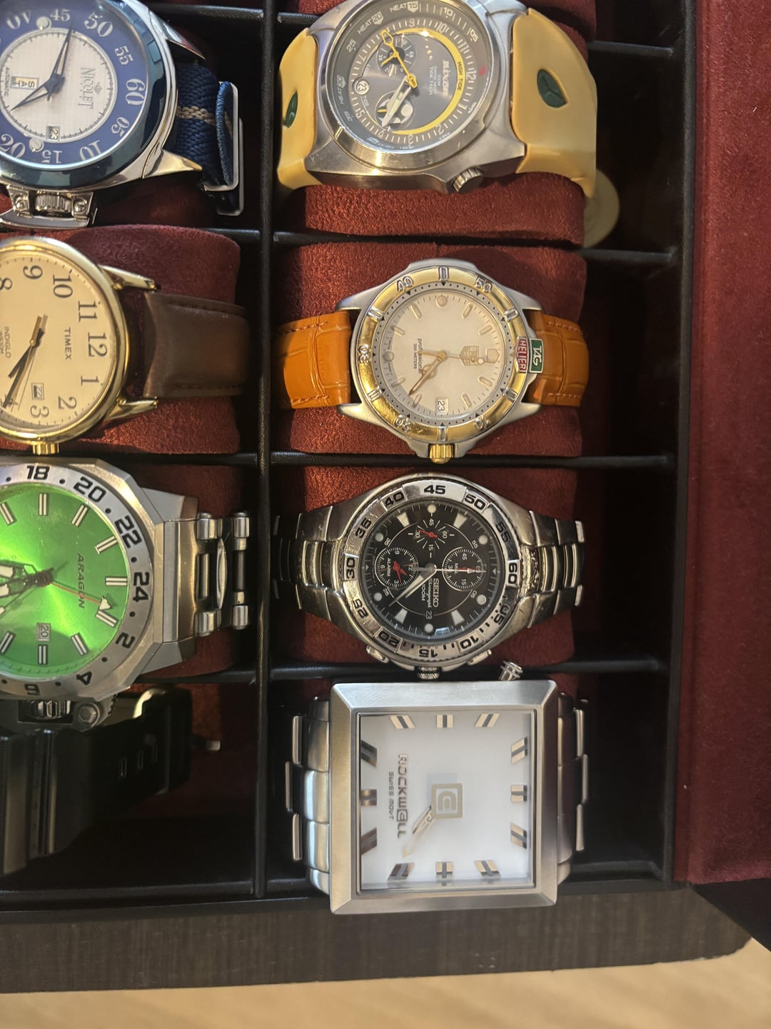 Tag Heuer 4000 - $320 (Used but great condition imo - comes with original Tag leather strap and aftermarket Orange Strap/recently relumed and fixed the date dial as I received it misaligned) Swatch Poppy Field Red - $45 (Used/Vintage but recently Polished and New Battery from Swatch Store) Android AD372 - $100 (Great Condition - Crystal has a nice effect, bracelet is nice, Miyota Automatic Movement / really unique watch) Android Intercross AD326 - $100 (Great Condition / Bezel rotates to unleash or switch the bracelet / Includes Extra Links) Nicolet 1886 - $75 (Great Condition - Original bracelet extra links included and nice NATO Strap included and nice movement. This watchmaker is sketchy but this watch surprises me, pretty nice) Skagen Denmark - $50 (Near New Condition- Comes with Red Aftermarket strap and will include Black Rubber Strap as well) Nixon Channel T Tide Watch Yellow - $100 (Used Condition - this is a used but older and rare Nixon watch. Tide and Moon Phase dials work as intended) Aragon GMT 48MM Green Dial - $150 (Used Condition / Unique watch and bracelet, Big Watch) Rockwell 50MM2 - $150 (Near New Condition - Big Watch but bracelet is really nice imo it’s thicccck) ~~Seiko 7T62-0FT0 - [20] (Severely Cosmetically Damaged!!! Watch runs perfectly - Chronograph Function works but sometimes gets misaligned - Alarm worked for awhile but doesn’t work anymore / Bezel does not rotate)~~ Rocawear - $15 (Near New Condition) Timex Gridshock XL - $45 (Used Condition - Crystal is scratched in multiple places) Timex Indiglo Easy Reader - $25 (Near New Condition - Worn a few times) Pulsar 650028 - $20 (Used Condition - Aftermarket Green Strap) Baby G-Shock BA-110PL - $30 (Used Condition) Casio AE-1200WH - $15 Casio WS-1600H - $15 Hi All! Ive decided to cut back and list a few watches I have that have been sitting around. My goal is to whittle everything down to fit into one watch box. I’ve done my best to provide clear descriptions of everything. Feel free to DM! Some of the watches conditions are nice and near new, and there are a couple that are used or heavily damaged. Let me know if you need any more information than I’ve provided. CONUS only PayPal FF or G&S. Everything is priced as shipped and listed as is. I don’t have many transactions, always just used this thread to look at and buy watches but wanted to give this a shot before listing individually on eBay. Cheers!