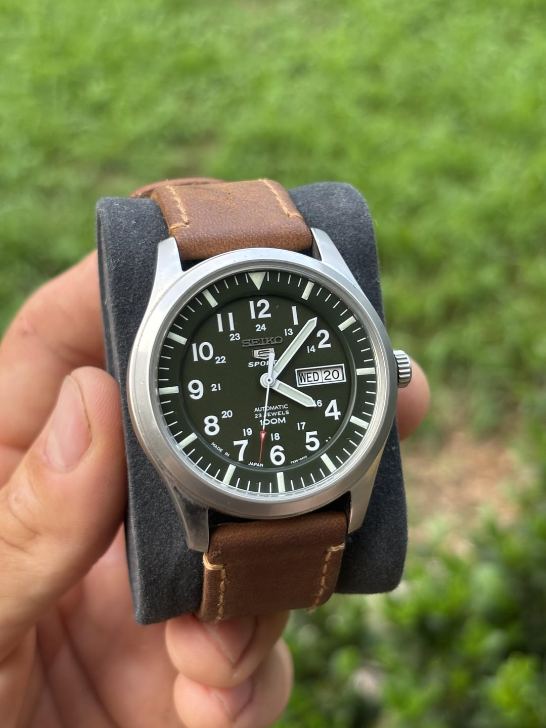 ![Thumbnail [WTS] Seiko 5 SNZG09J1 Green Field Watch w/ Barton Leather Strap 5](https://cdn-cf.watchpatrol.net/120x120/img/full/0938c25e1c022846f17b630b62b05622a673d1ff.jpg)