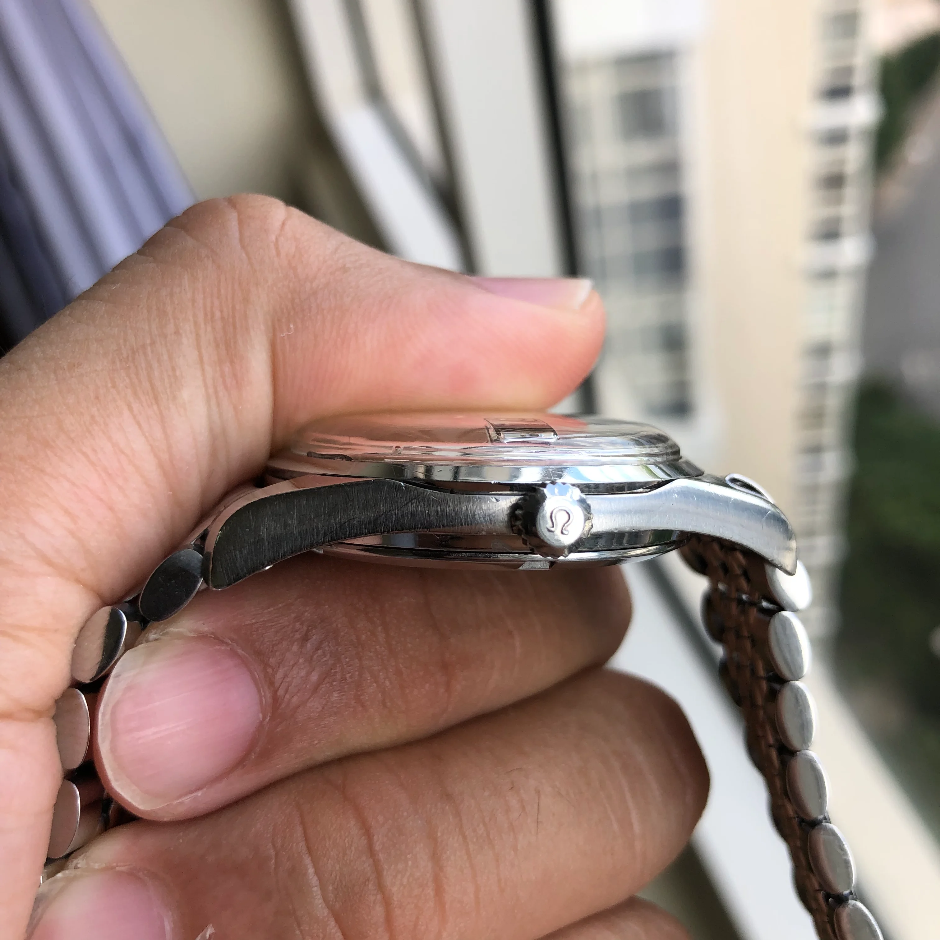- Case: The diameter is 35mm without the crown. Original case is in good condition with scratches. Original Omega knurled crown.