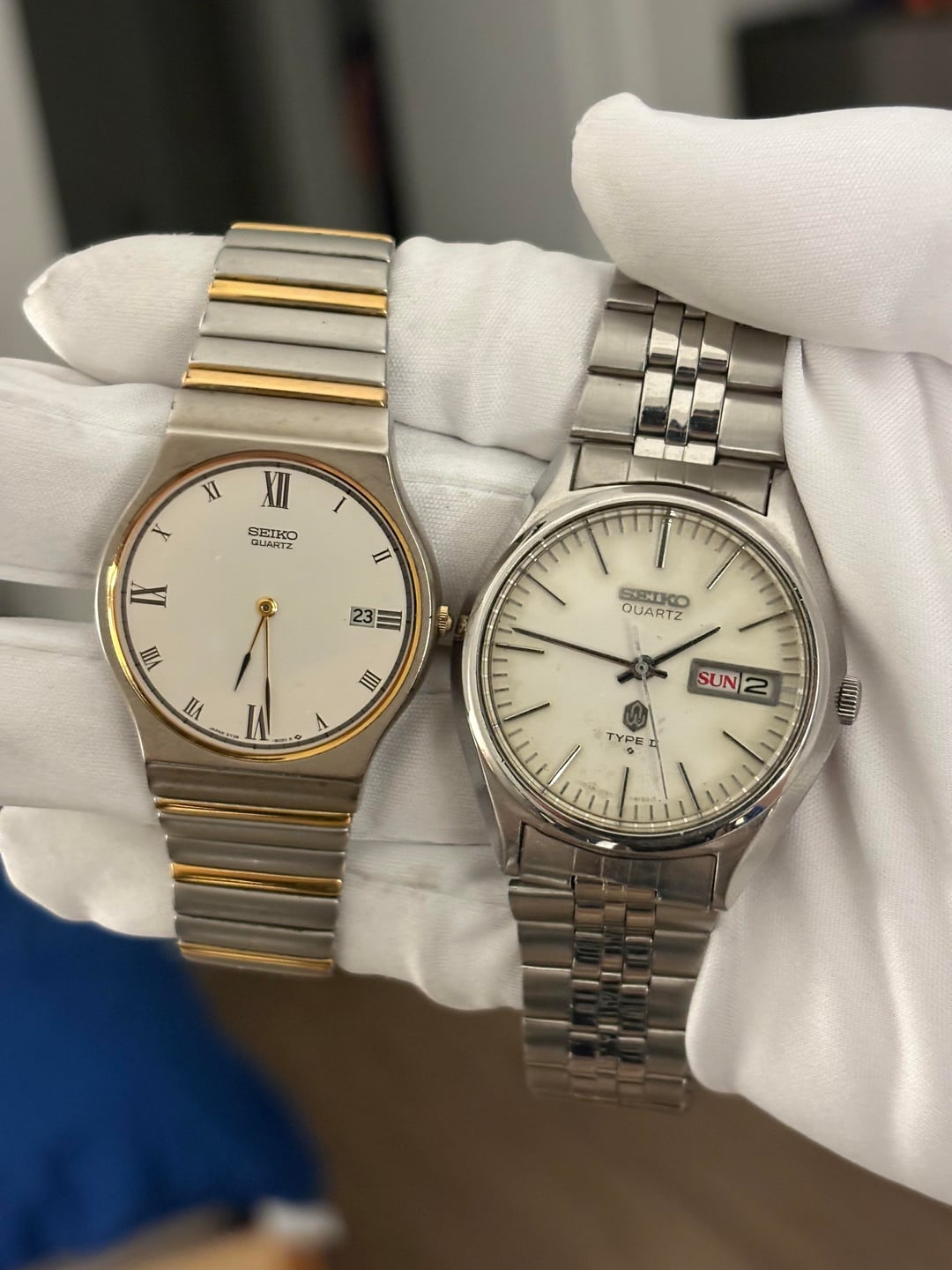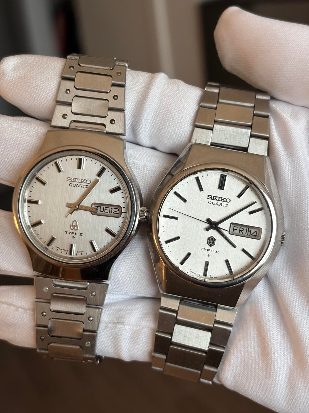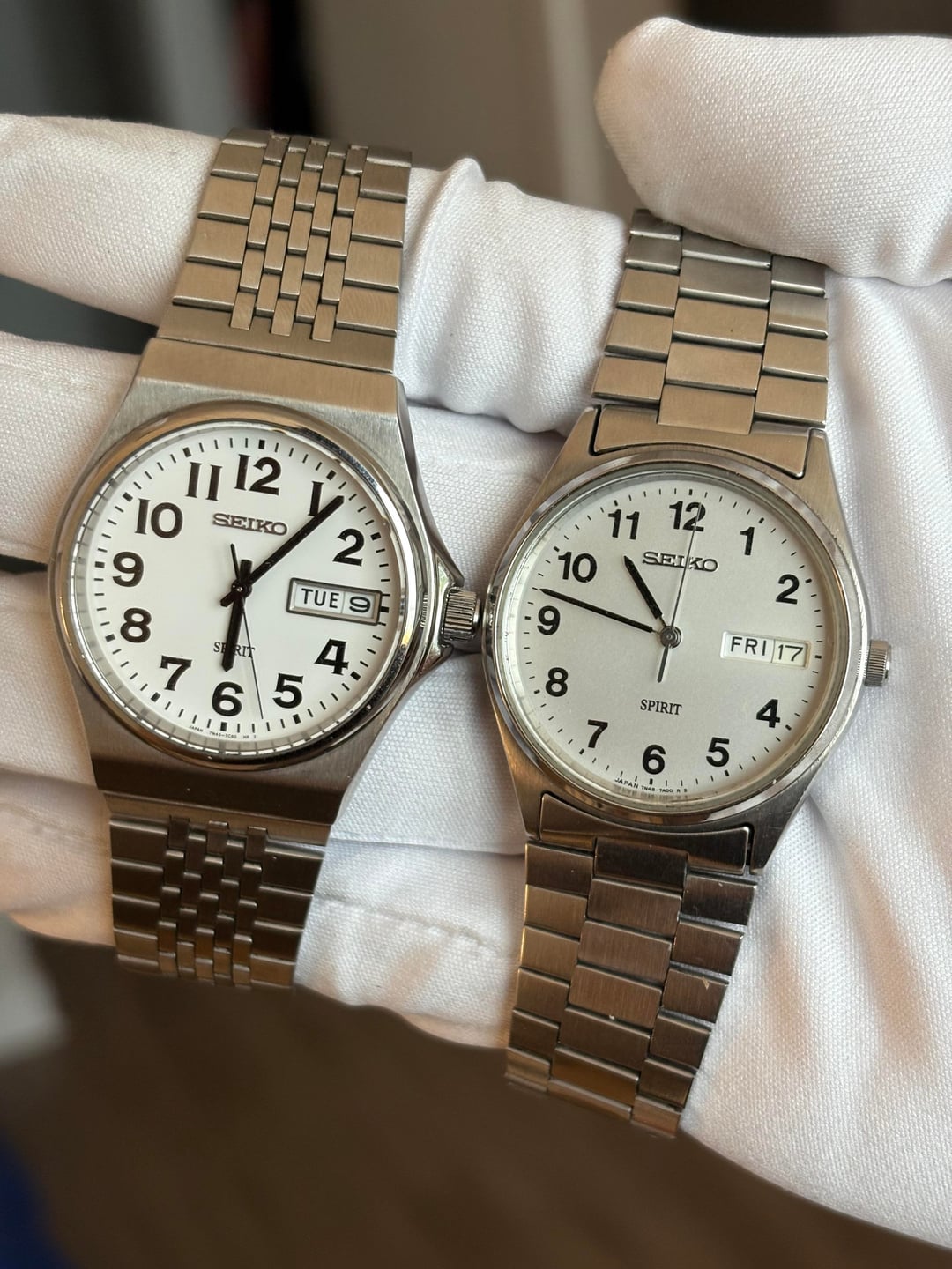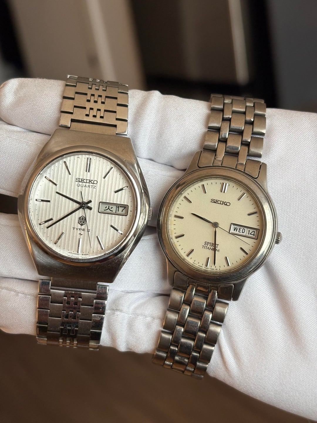 Tuesday sale! Looking to sell this collection of vintage Seikos! Based in Durham, NC, USA Prices are in order of pictures from LEFT to RIGHT: Silver Type 2 4623-8010 - $130 *Spirit Titanium 7N43-7150 - $130 Silver Type 2 4336-8000 - $130 Spirit 7N48-7A00 - $130 *Black Type 2 4623-6000 - $130 *Black Silverwave 7546-802B - $130 Spirit 7N43-7B70 - $130 Spirit 7N48-7A00 - $130 Brown Faceted Type 2 7123-8020 - $150 Blue SQ 7122-8030 - $150 Silver Type 2 8223-6030 - $130 Blue 5 Actus 6106-7520 - $200 *Silver Type 2 8229-8000 - $130 Silver Type 2 4623-8000 - $130 White Roman 5Y39-8020 - $130 Silver Type 2 0903-8110 - $130 All have original bracelets unless marked* Worldwide shipping via insured USPS or UPS I accept Zelle, PayPal FF, PayPal G&S (+5%), and Venmo I’m open to offers and bundle pricing! PM for more images and info! Thanks for looking and comment before PMing!
