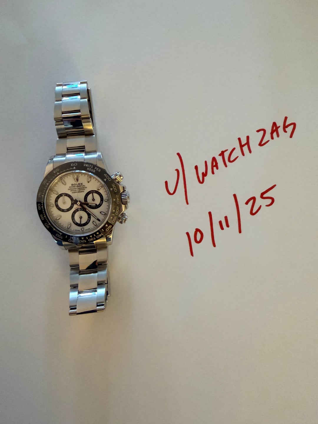 Selling my Rolex Daytona “Panda” 116500LN. Watch comes with original box, papers, warranty dated 2023 and hang tags. Case and bracelet are near mint (one small mark on a lug where I changed an Everest strap), the clasp has a few scratches. Asking $29,000 obo wired. Happy to send more pics or video. DM or email [email protected]. Thanks!!