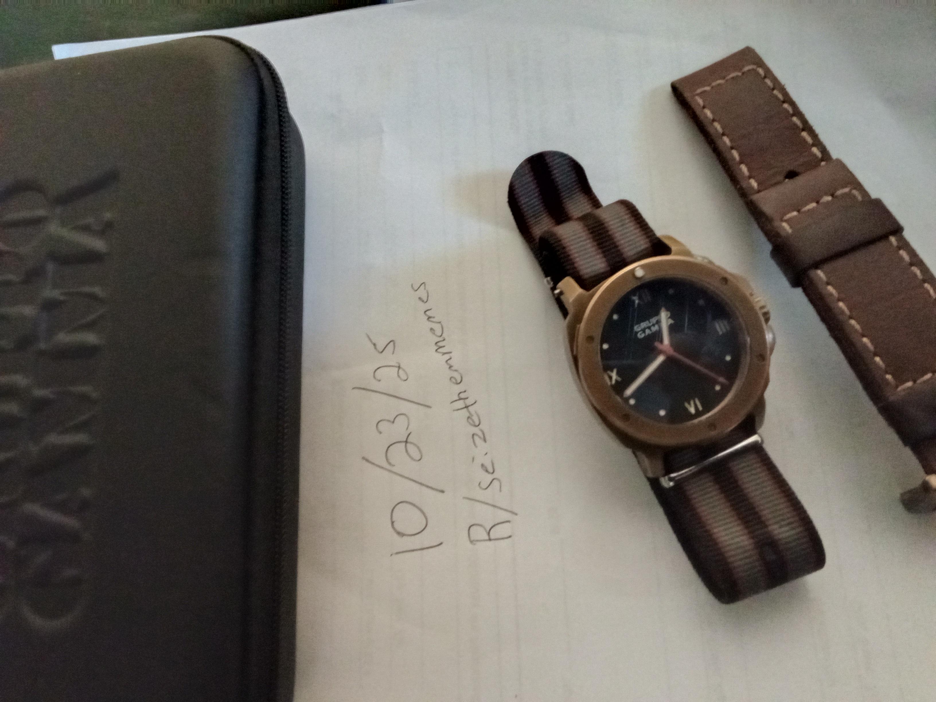Ce l'ho da qualche anno. Davvero uno straordinario orologio in bronzo. Viene fornito con pelle e custodia originali. $ 500 PayPal.