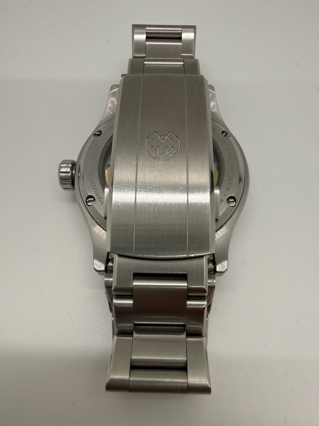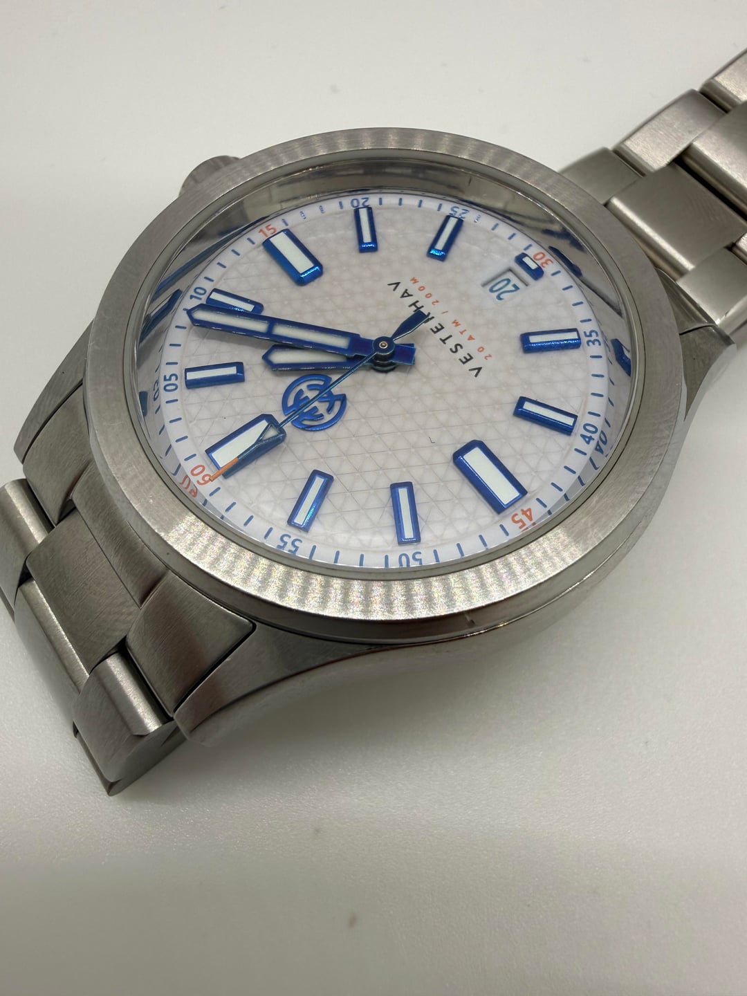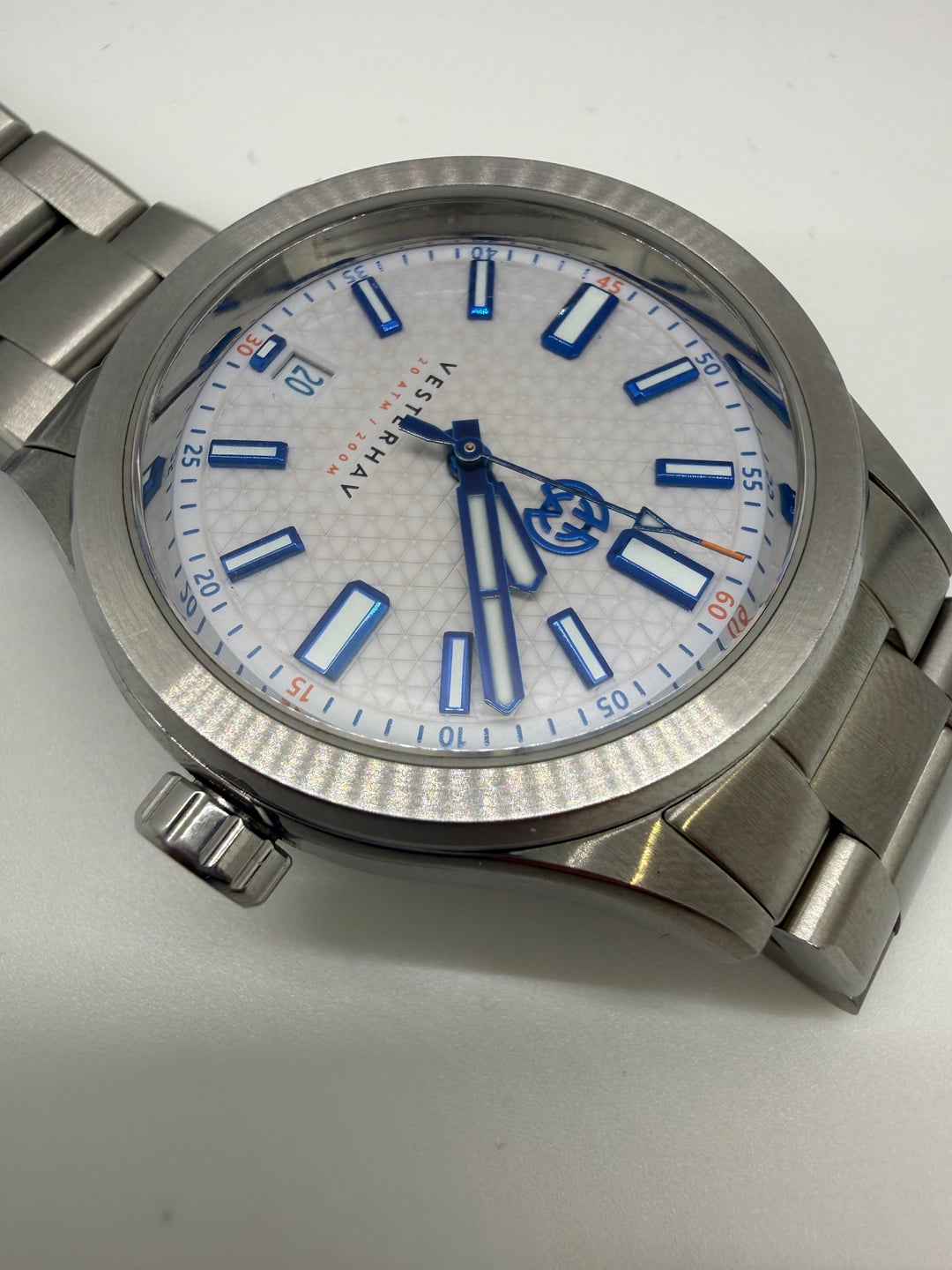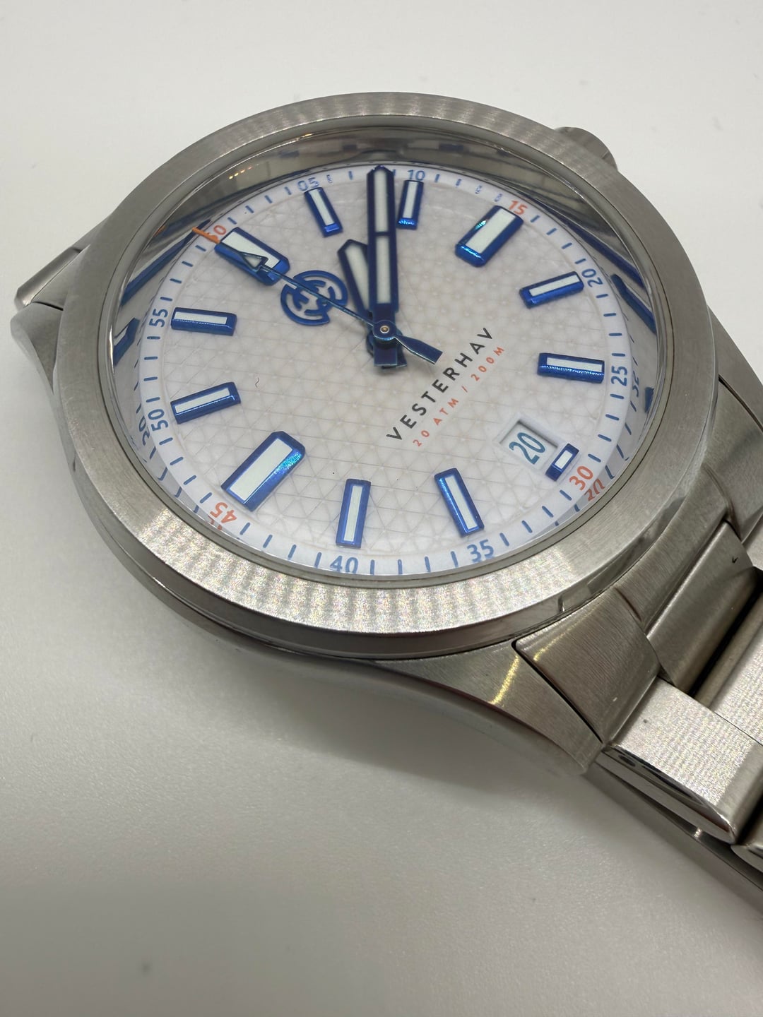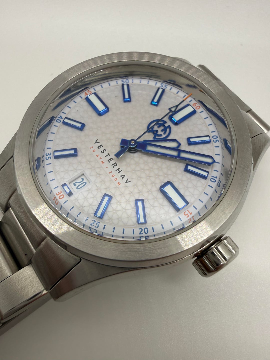 With a case height of just 10.45 mm, **VESTERHAV** is our slimmest automatic watch to date. Despite its impressively slim profile, we have not compromised on durability or functionality. **VESTERHAV** is engineered for endurance as well, and can also take on the challenges of diving, boasting a water resistance of up to 200 meters. * Movement: Premium Miyota 9019 automatic movement. 28800 BPH. Up to 42 hrs power-reserve. * Size: 38 mm diameter. 20 mm lug width. 46 mm lug-to-lug, 10,45 mm height. * Glass: Sapphire crystal (front and back). 6-layer AR coating. * Case material: 316L surgical-grade stainless steel. * Strap: 20 mm width. Fits wrists with sizes between 15 - 21,5 cm * Dial: With Swiss Super-LumiNova® White10 BL Grade X2 on markers and hands. * Water resistance: 20 ATM / 200 meters / 660 ft 💵 Price: $475 OBO 📦 Shipping: CONUS included, otherwise calculated to your destination 💲 Payment: PayPal or Venmo F&F or G&S (buyers add 4.6%) 🚫 No trades at this time