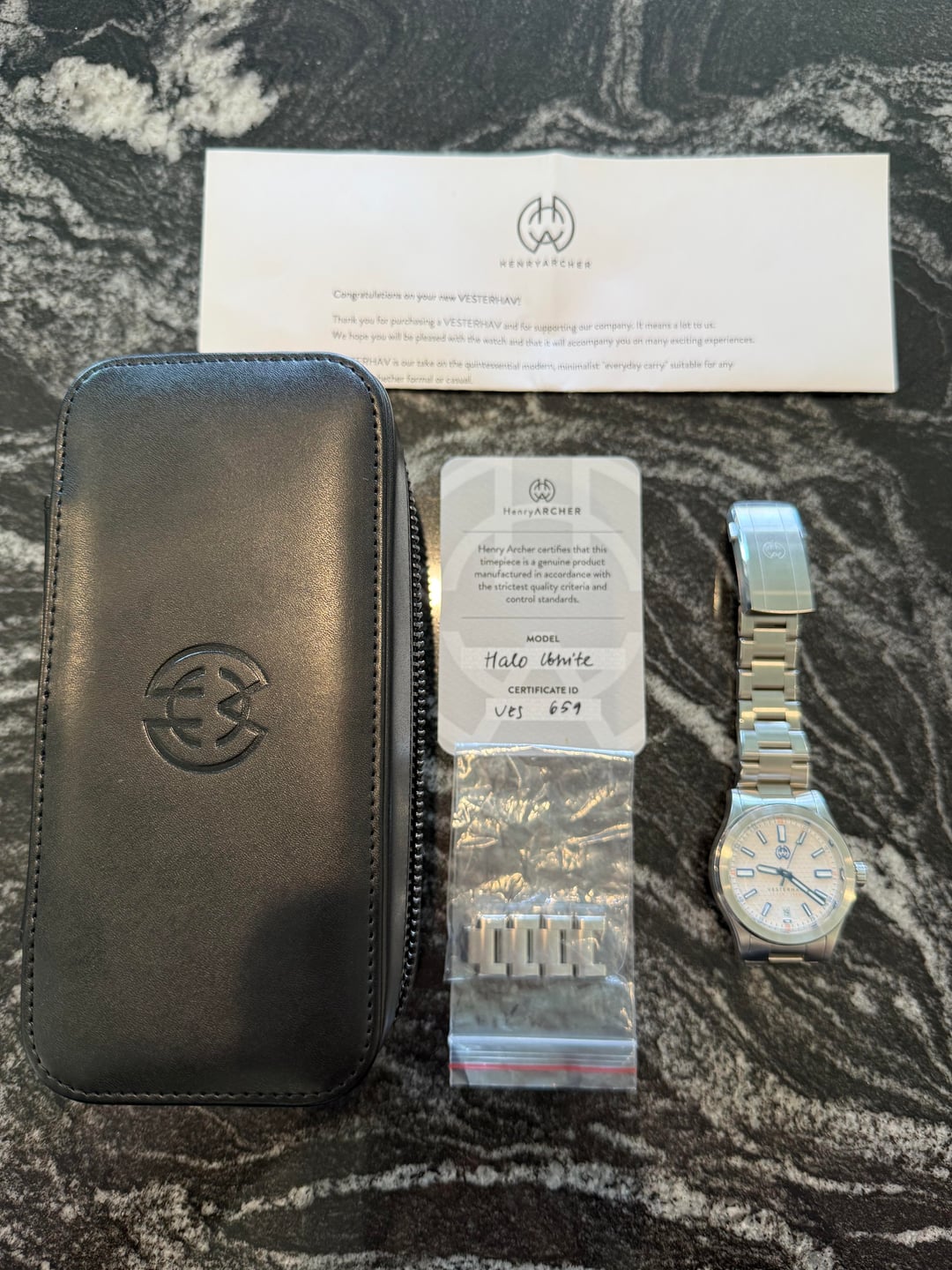 ![Thumbnail [WTS] Henry Archer Vesterhav 38 Halo White | White Dial, Steel Case | Excellent Condition | $475 OBO including CONUS shipping 4](https://cdn-cf.watchpatrol.net/120x120/img/full/8c319d3b70dd3893a842adc11d0ca3cdbd36541a.jpg)