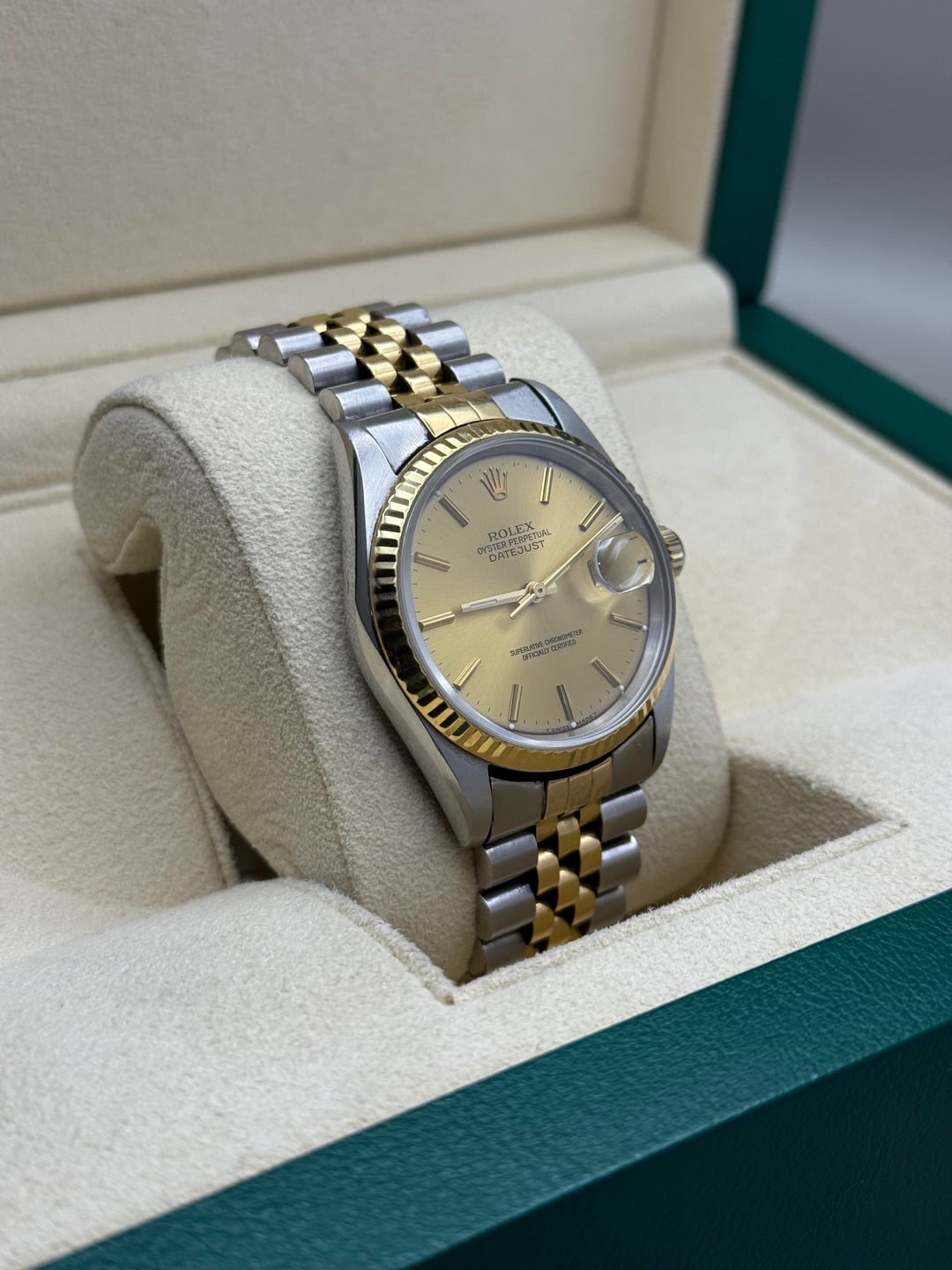 | Rolex Datejust 16233 "T" Serial 18K/ SS 36MM Champagne Stick Auto Watch. B/B rick$romana (1181) |