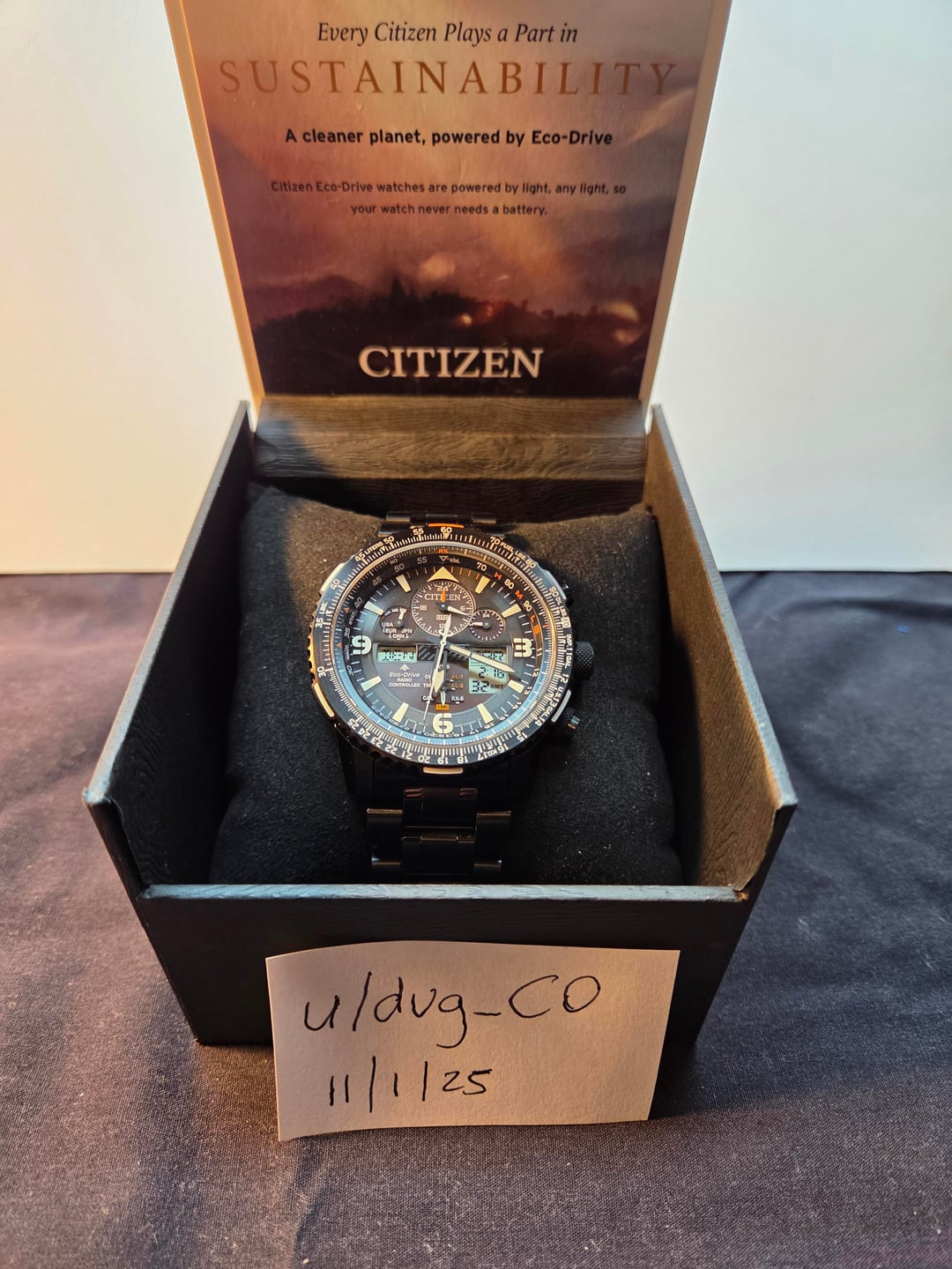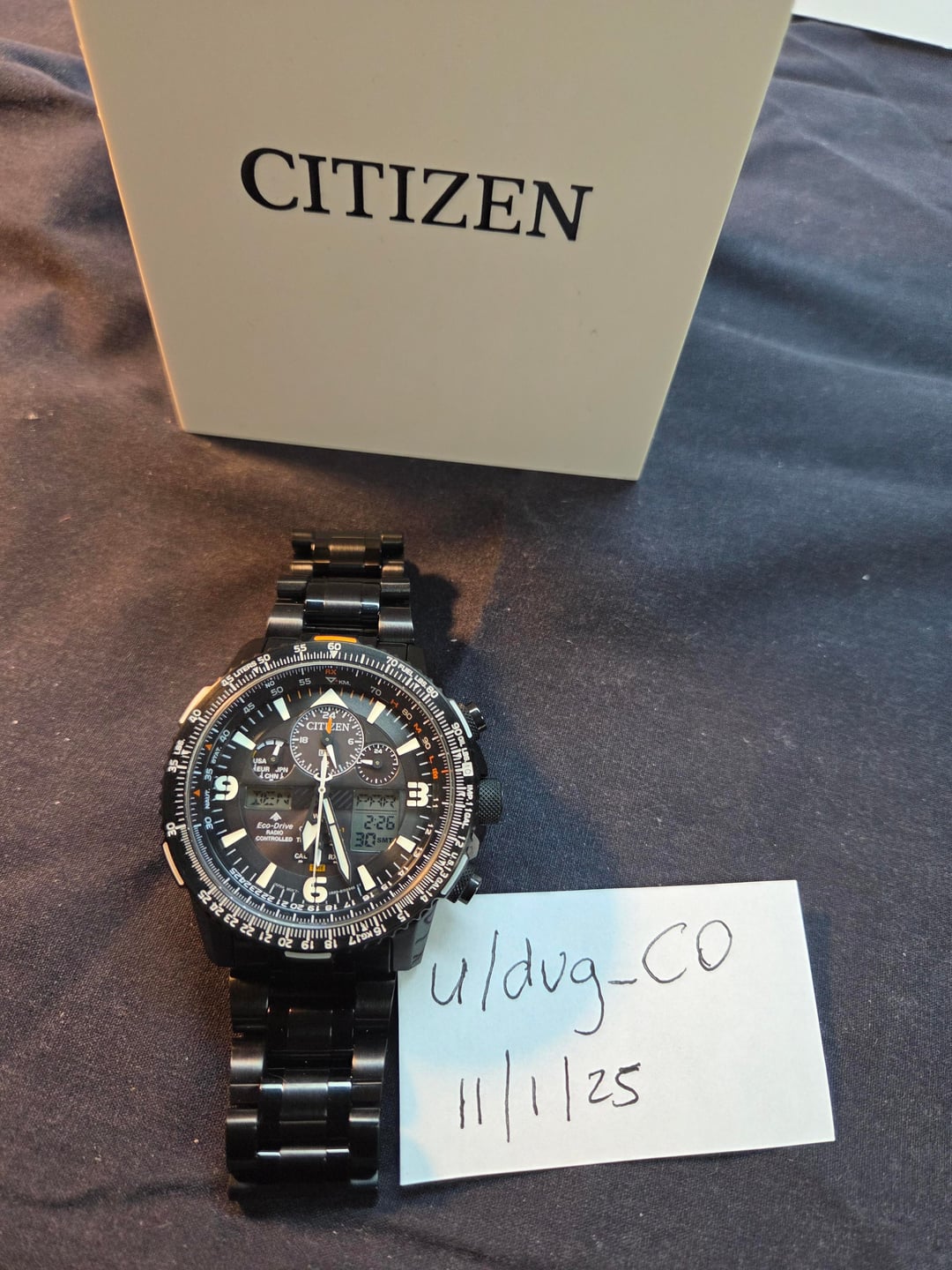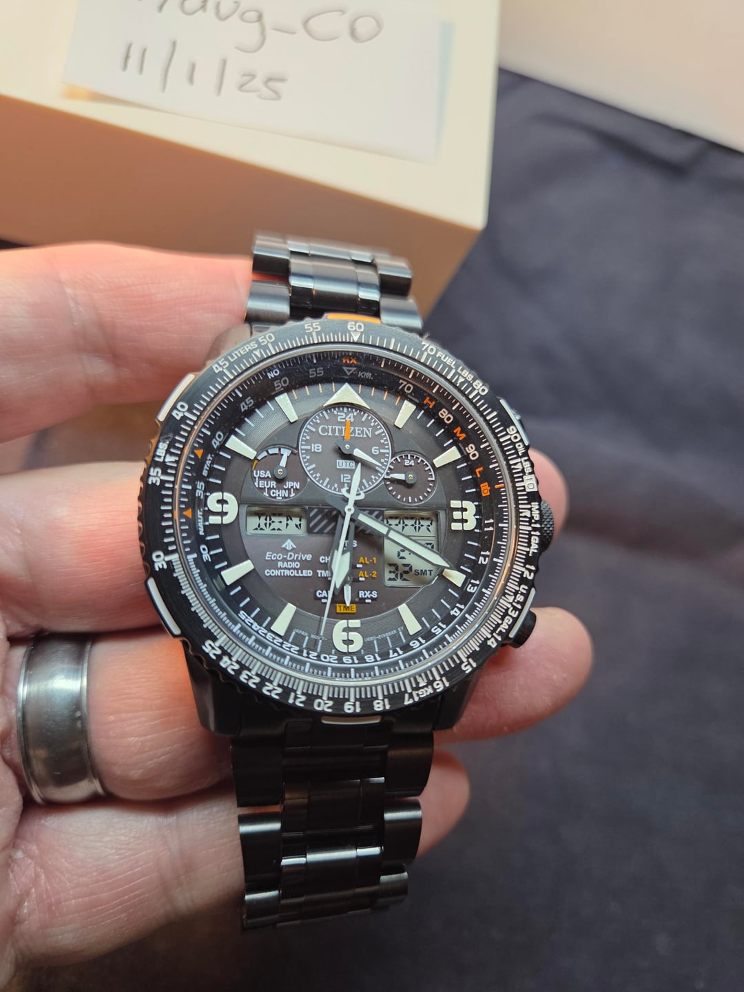 \*reposting with mod permission due to timestamp photo upload error\* \[WTS\] Selling my like new Citizen Skyhawk A/T. Full links, never sized. Watch and Citizen box only. Radio controlled time and solar powered. Watch functions perfectly. Only used to time my other watches so in like new condition - see photos. Timestamp: [https://www.dropbox.com/scl/fi/ov75v8xlkb56jordu6pou/20251101\_1820.jpg?rlkey=tefqbtkt7e0fadcth3t00nlkw&st=dyv5hg93&dl=0](https://www.dropbox.com/scl/fi/ov75v8xlkb56jordu6pou/20251101_1820.jpg?rlkey=tefqbtkt7e0fadcth3t00nlkw&st=dyv5hg93&dl=0) Photos and video: [https://www.dropbox.com/scl/fo/bto0w7ks82myonj2odhsx/AECadqCeCpQ--wn5i7\_rStw?rlkey=28nqy81tauj48q3lxnex3ljjm&st=7nllaffq&dl=0](https://www.dropbox.com/scl/fo/bto0w7ks82myonj2odhsx/AECadqCeCpQ--wn5i7_rStw?rlkey=28nqy81tauj48q3lxnex3ljjm&st=7nllaffq&dl=0) $375 shipped CONUS or international at buyers expense. Payment accepted via Zelle, Venmo, PayPal FF (or G&S for buyers with strong history and will cover fees.) Located in Fort Collins, Colorado. In person sale is welcome if you're nearby. I'm new to selling on Reddit so please pardon any errors in protocol. I have lots of references for buy/sell/trade on Facebook watch groups you might also be in and 25 years of selling on eBay with 100% positive feedback. Trimming down my collection so trades are unlikely. Happy to do a video call or answer any questions. Thanks for lookin'
