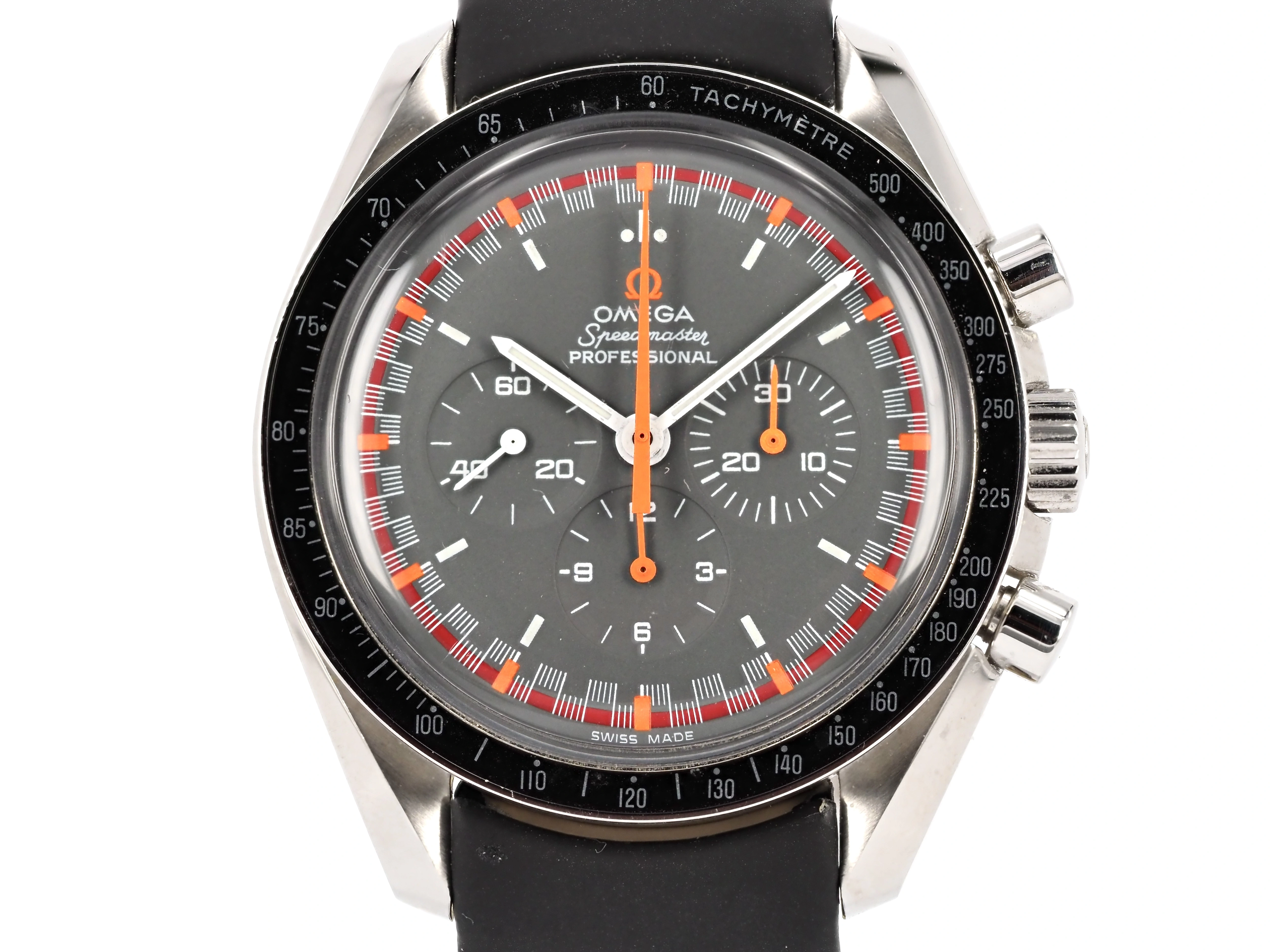 Dial: Grey dial with orange and red accents, fitted with orange and white Japan Racing Service hands - Service dial - Now exchange only from Omega