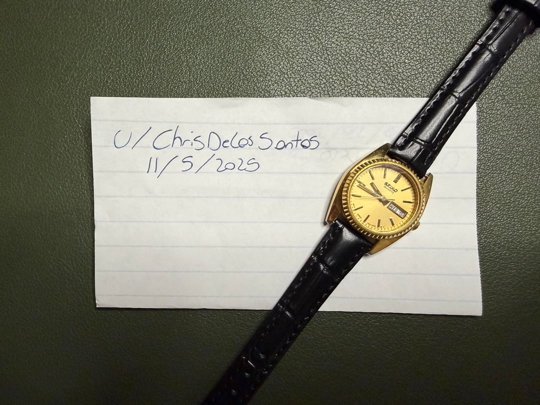 -Details: a beautiful ladies gold Seiko on a new leather strap. Perfect gift for your wife, gf, or significant other. For any lady looking to elevate their style! Day and date function, fully functioning, and in good condition. -$99 shipped -Includes shipping (US). I accept Venmo, Zelle, CashApp, and PayPal (+4% if using G&S) -Case size: 23mm -Movement: Quartz -Timestamp: https://imgur.com/a/DJvO15v -Location: Downtown Los Angeles -IG: @ColeccionDeLosSantos -TikTok: Chris.DeLosSantos