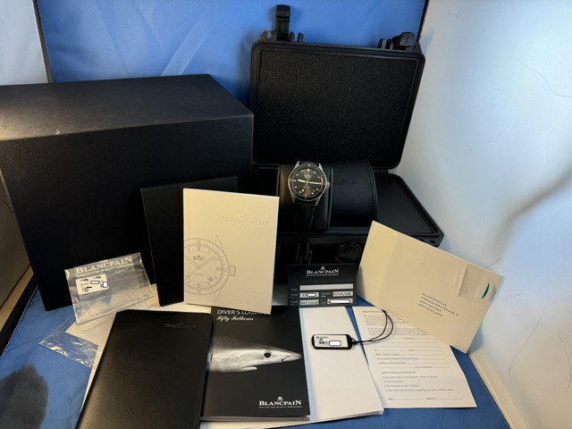 Full Package Includes: Outer Box, Inner waterproof Pelican storage Box, Travel Case, Warranty &, Instructions Book, Warranty Card, Proper Tag, Wallet, Unfilled Registration Card, Divers Logbook, Case Back Sticker and some Blancpain Zipp-Lock plastic bags. All in Pics.