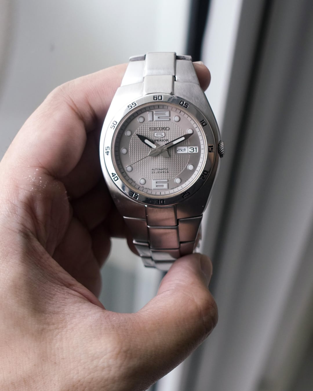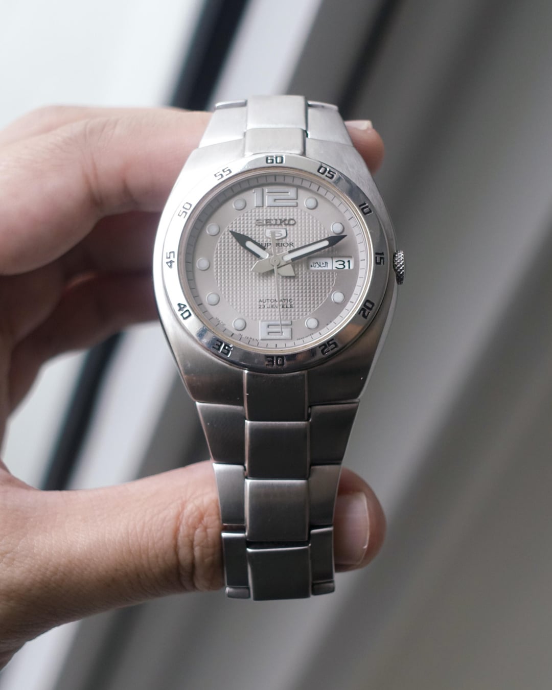 Hello WatchEx! Up for sale is this rare Seiko 5 Superior. This comes with a silver waffle dial with luminous indices. The watch is in great condition for its age. The dial is in great condition. The lume on the indices are still very strong. The case and bracelet are unpolished. It has an exhibition case back which showcases the 7S36 automatic movement. The daywheel is a bilingual English/Arabic one. It comes with the oem Seiko integrated bracelet which fits up to a 7” wrist. Recently serviced and timekeeping is within Seiko specification. This piece rarely comes up online. Sold as watch only and will be shipped in a replacement box. Reference: 7S36-01N0 Case: 36mm w/o crown Lug to lug: 40mm Lug width: 19mm Thickness: 10mm Price: USD240 net SHIPPED CONUS Shipped internationally using FedEx. Paypal F&F or G&S (+4.5% International Paypal G&S Fees) Album: [https://imgur.com/a/jwjnen7](https://imgur.com/a/jwjnen7) Timestamp: [https://imgur.com/fNLOwUz](https://imgur.com/fNLOwUz) . . **1) Please COMMENT FIRST before sending me a pm or chat.** **2) PayPal F&F is preferred. I will only allow G&S for users with successful transactions here on WatchExchange** **3) I welcome requests for custom timestamp photos.** **4) All watches are sold “AS IS” with no personal warranty. I will only accept returns/refunds for issues that are undeclared on my end.** **5) Feel free to ask me any questions regarding my listings! You can also check my 160+ successful transactions here using the WatchExBot.**