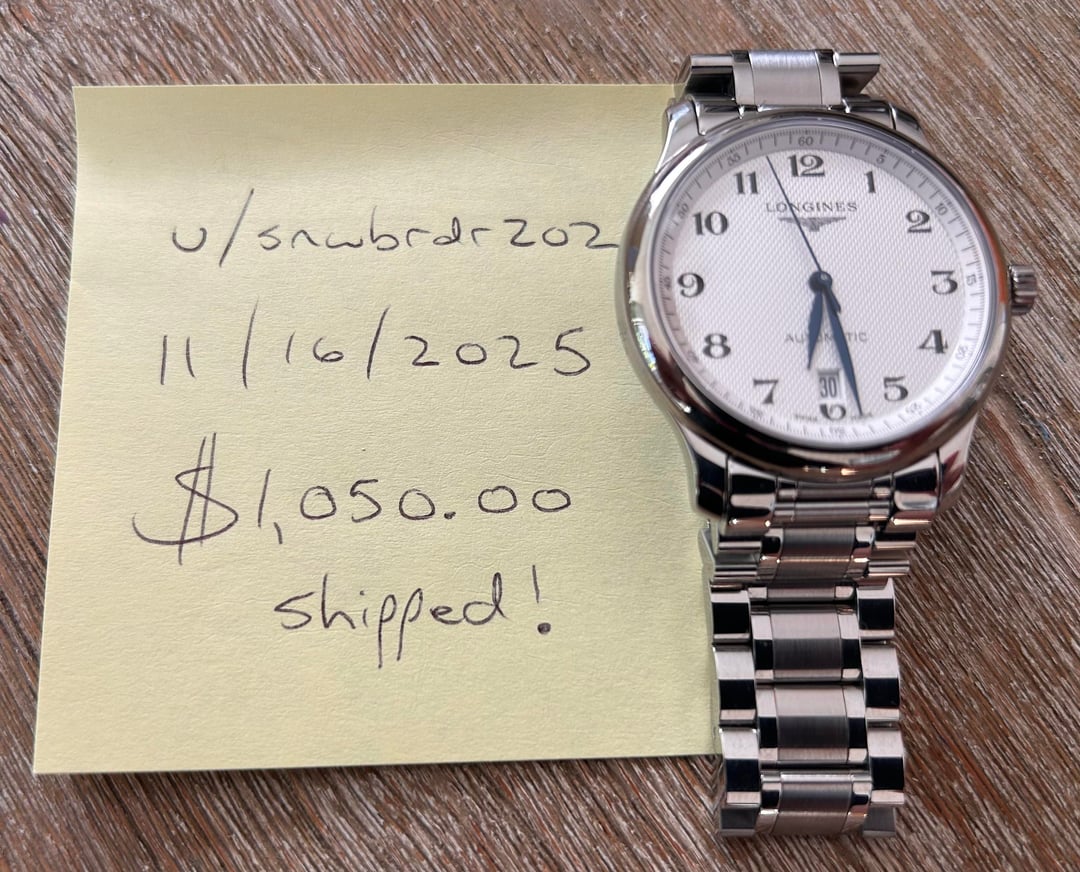 Greetings fellow timepiece addicts! I have a gorgeous watch for sale or maybe trade. This Longines Master (L2.628.4.78.6) has been gathering dust in my closet for years now. I can’t find a single scratch, scuff, or mark on it. It’s a really beautiful timepiece with subtle blue hands, barleycorn dial, and a SUPERB bracelet imho. I wear my Omega 99% of the time and just never got around to having this one sized to my wrist. I’m embarrassed to say that I can’t find the warranty card and papers, but the original box is included and is in fantastic condition. It’s a really classy piece and I’m sure it will make someone very happy. Following the original listing, I had a number of interested parties contact me asking what my bottom dollar would be, so I’m listing her at that price; I’m asking 1050 USD shipped. I would possibly consider a trade for a Hydroconquest (41mm blue/gold or 39mm black or blue). Feel free to reach out with any questions or if you need additional pictures or if you’d like to FaceTime to see the watch in real time. Thanks everyone! EDIT: I have TONS of references on other subs & forums. Buy with confidence 👍🏼