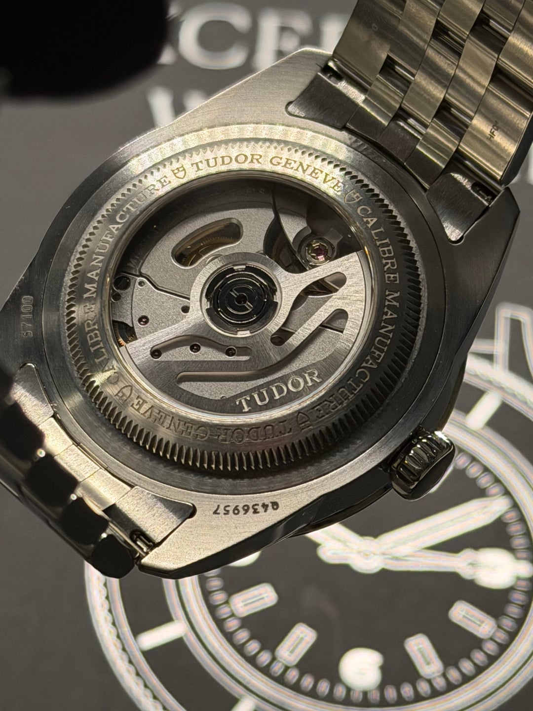 Tudor Glamour Double Date 57100. 42mm. Exhibition caseback! In-house movement! Watch & box, full links! **$1850** / Zelle, Venmo, or WU accepted. Timestamp: https://imgur.com/a/GjEpJKl I have **tons** of references on multiple platforms including WatchExchange. We also are a 5-STAR rated business on Google!