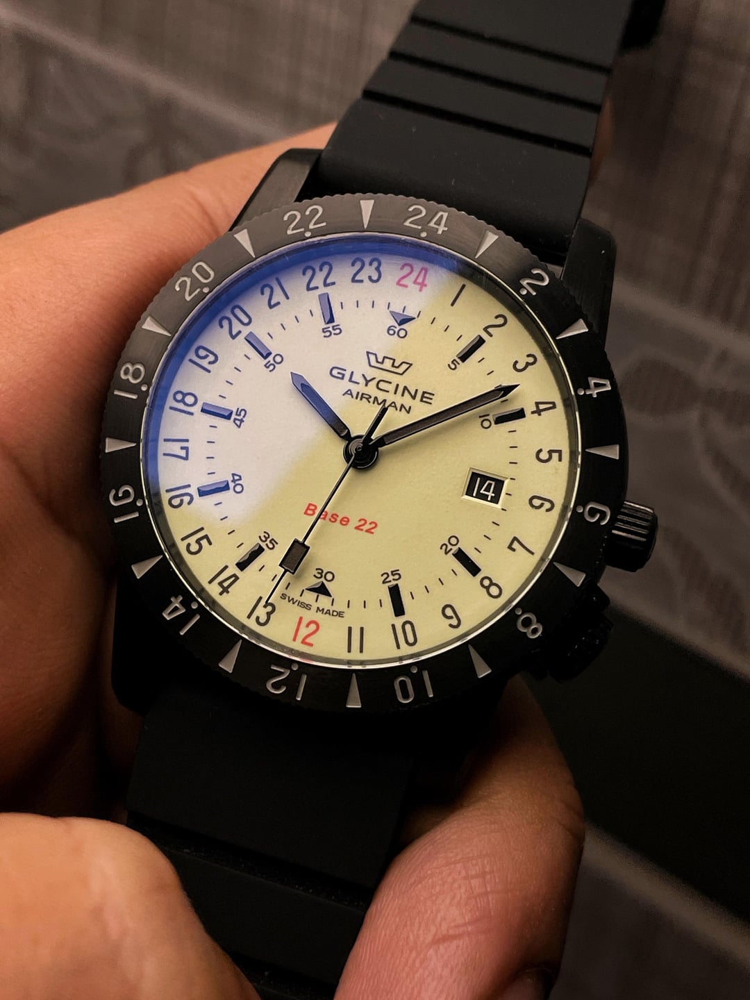 ![Thumbnail [WTS] Glycine Airman Base 22 All Lume Dial | Ref. GL-0124 | Dual GMT | Black DLC Case | 42mm | 599$ Global Tracked Shipping 5](https://cdn-cf.watchpatrol.net/120x120/img/full/3d08b24ce089db748d882f39d09a6a3c9525fbd0.jpg)