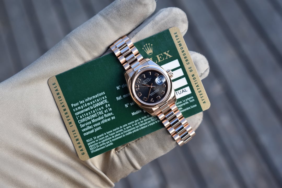 italiano![[WTS] 2010 Ladies Datejust Presidential 18K Everose Gold Black Dial 179165 with Card 1](https://cdn-cf.watchpatrol.net/600x600/img/full/4ea52c19ae3e518540a5b626890e16186484780d.jpg)