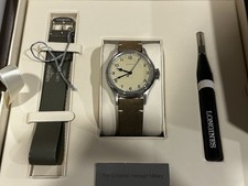 Up for sale is a BEAUTIFUL Longines Heritage Military in pristine condition. Never used the factory leather strap or nato that comes with the set. It is a full boxed set including the book that comes with this piece. This piece is a Longines reissue inspired by the 1940s 6B/159 pilot’s watch supplied to the Royal Air Force. The dial plate itself is (I would say) perfectly colored for the vintage look. On top of the dial plate, is a “spray” of little brownish black specs further aiding the aged look and giving the watch a more legitimate vintage feel. Furthermore, this spray ensures that no two watches are identical. Comes with an additional 5 Crown & Buckle Single pass Nato straps to keep the look changing & a Delugs olive green leather (shown mounted) with an authentic Longines pin buckle as well. I am asking $1450.00 via bank wire or Zelle and will ship anywhere within the US from Hawaii Case Material: Stainless Steel Case Back Material: Stainless Steel Top Glass: Domed/Box Sapphire + AR Coating Underside Case Diameter: 38.5 mm Lug Width: 19 mm Lug-to-lug Length: 48 mm Thickness: 11.70 mm Water Resistance: 3 Bar Movement Automatic Caliber: Longines L888 (ETA 2892 Base) Frequency: 25,200 bph (3.5 Hz) Jewels: 21