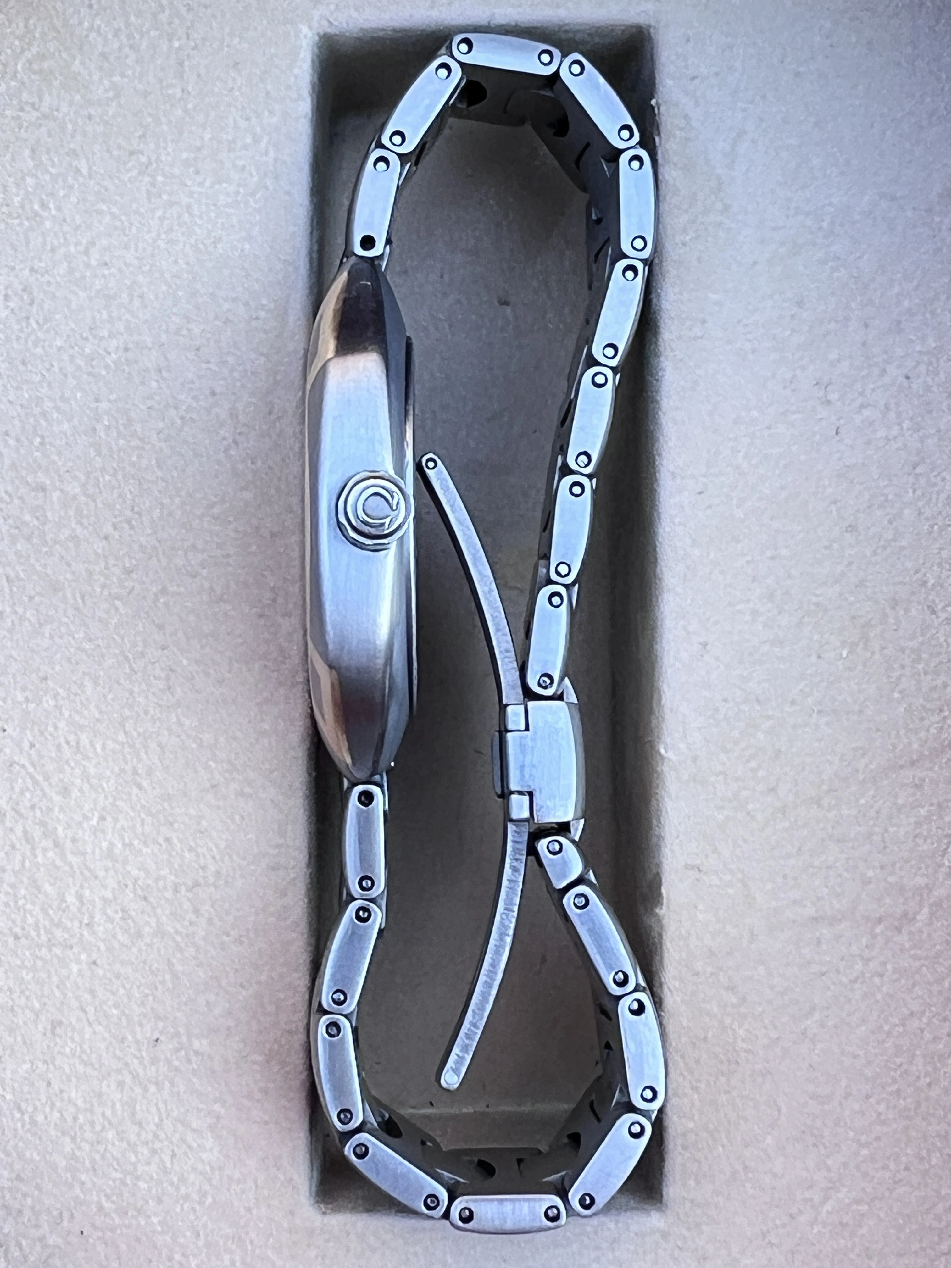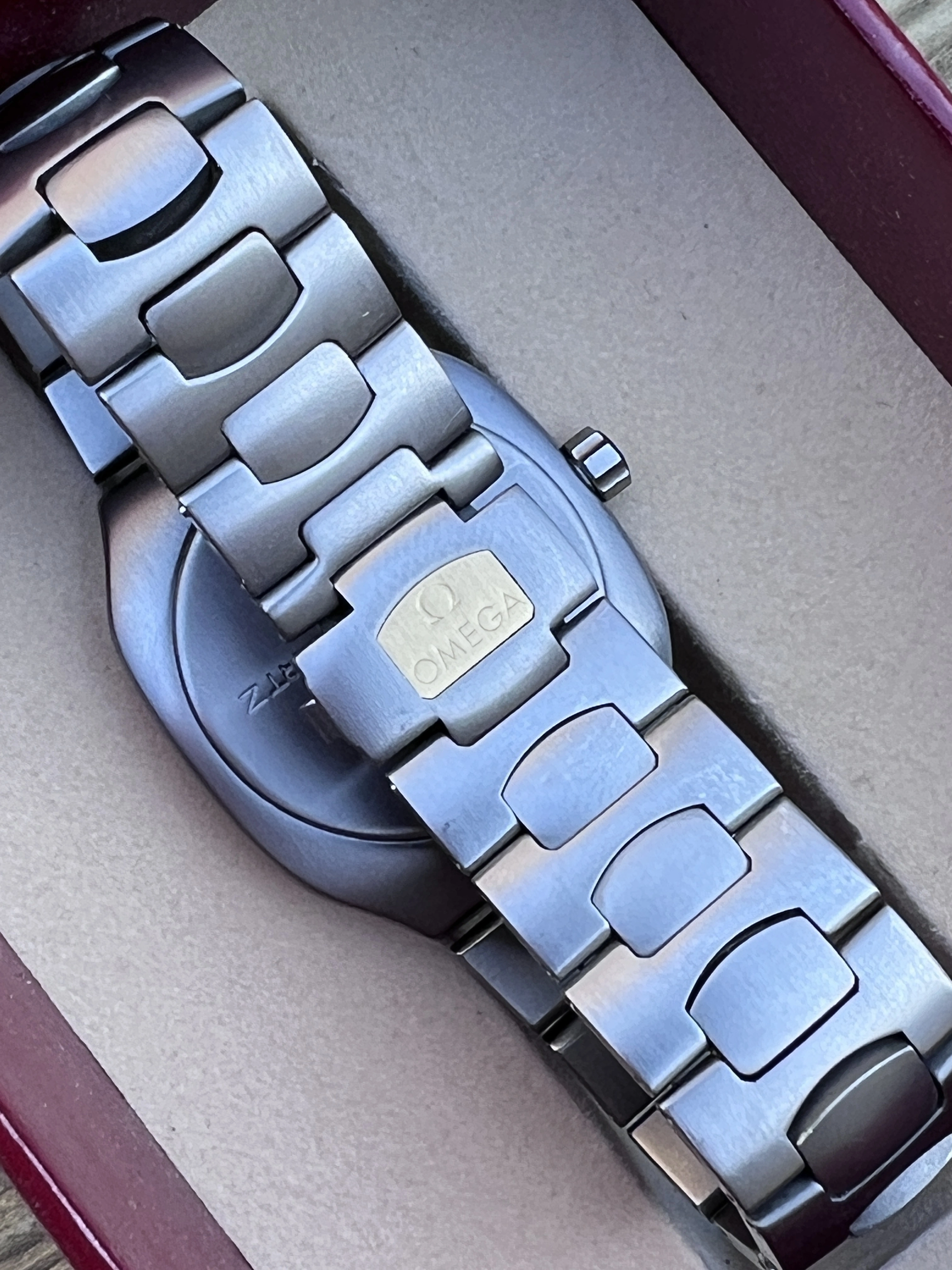 Looking for a new home for my Seamaster Polaris Titane, a Genta-designed wonder from the 1980s that was famously (for those who followed him) endorsed by John McEnroe. This one is in excellent condition with a hairline scratch on the caseback. Case width is 32mm, the watch is extremely light on the wrist, and the bracelet clasp is a clever design that is very secure.