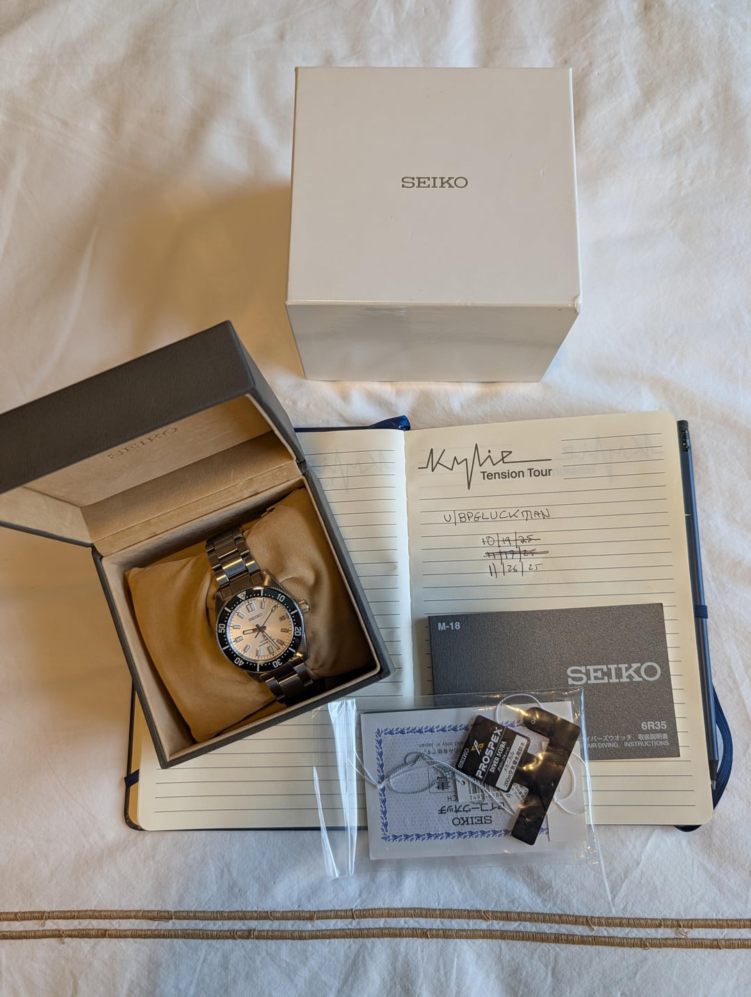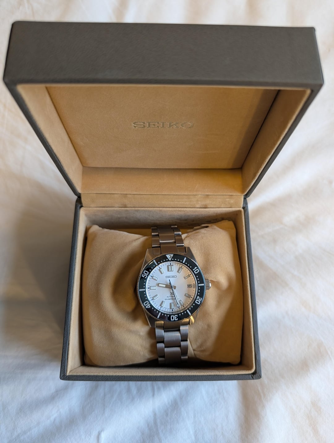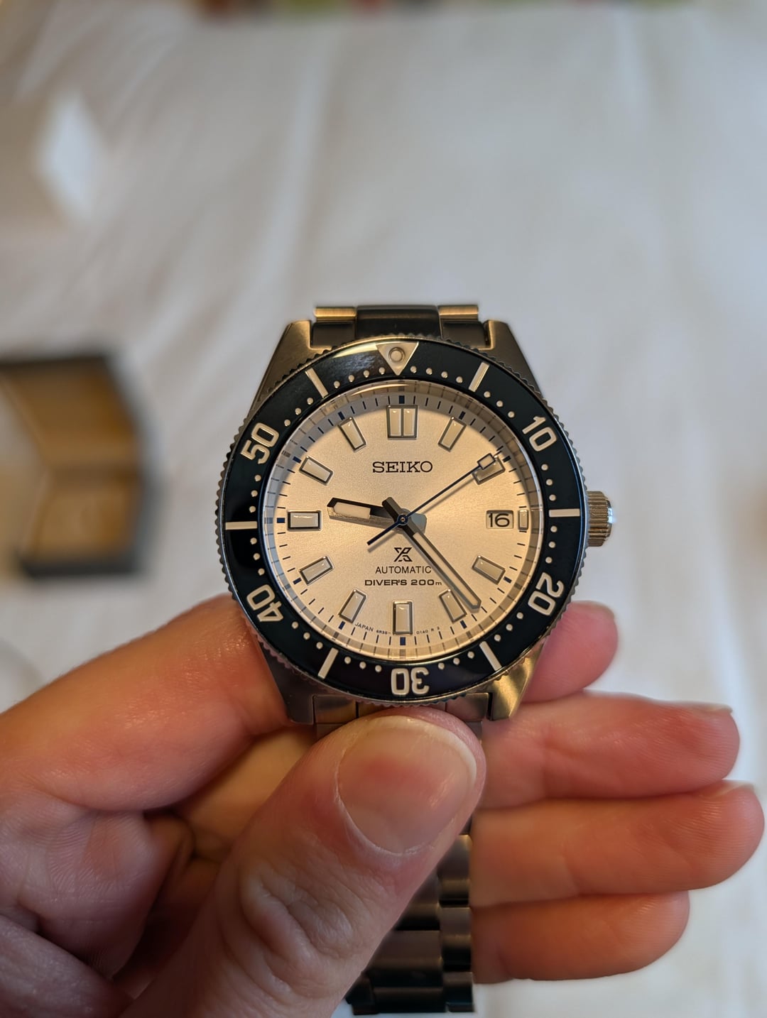 Selling a Seiko SPB213 that I've never worn with full kit and original bracelet that has never been resized. Asking $699, which includes shipping in the US via USPS Priority Mail. Payment via PayPal F&F or Zelle prefered; please plan to add $20 for PayPal G&S. Plenty of references as a buyer and a seller. Full watch specs as follows: Caliber Number: 6R35 with a 70 hour power reserve Thickness:13.2mm Diameter:40.5mm Lug-to-lug:47.6mm Crystal: Curved sapphire crystal Crystal Coating: Anti-reflective coating on inner surface LumiBrite on hands, index(es) and bezel Clasp: Three-fold clasp with secure lock , push button release with extender Distance between lugs: 20mm