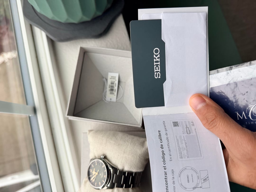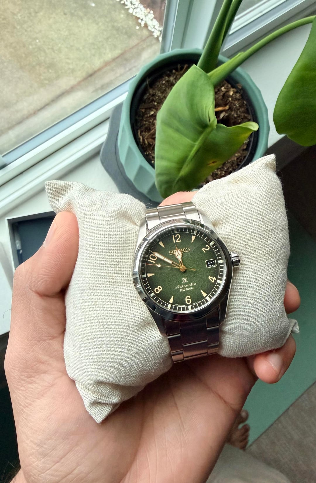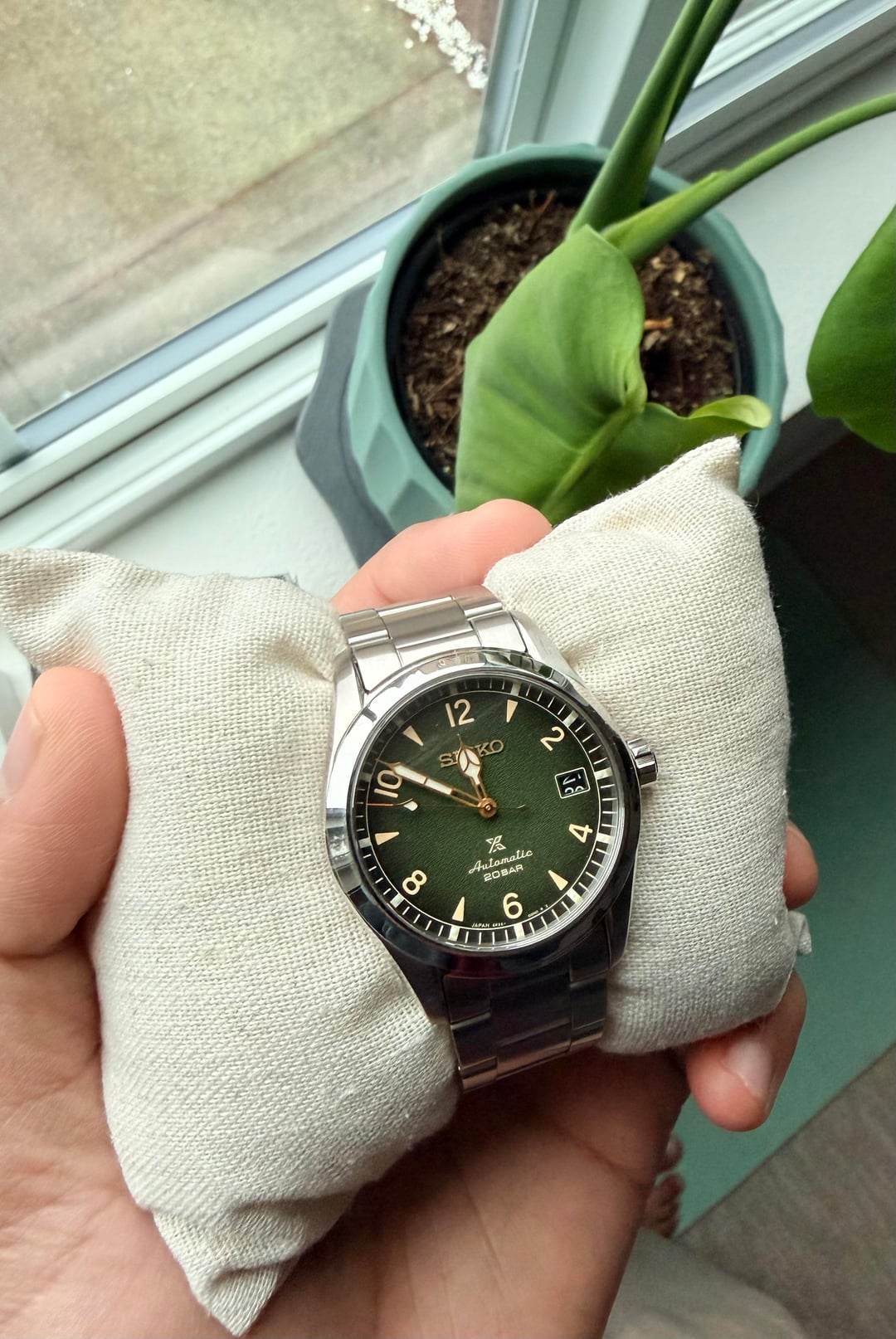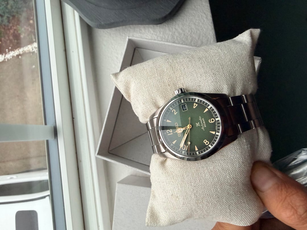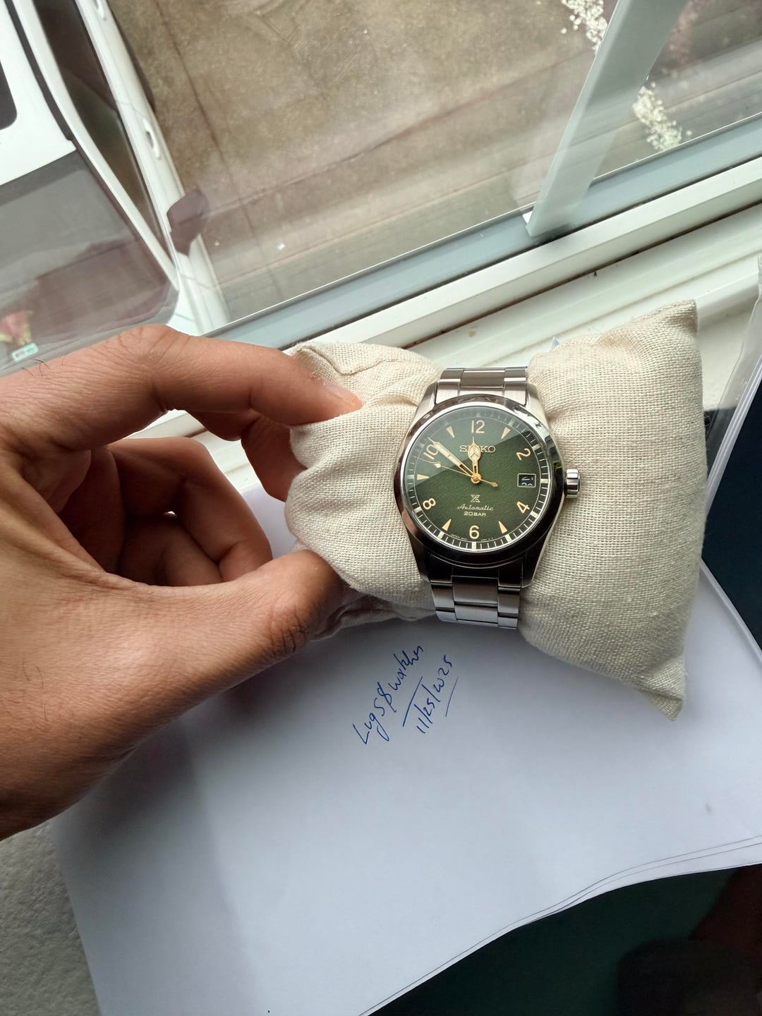 Up for sale is my Seiko SPB155, the popular “Baby Alpinist” with its classic field-watch styling and refined proportions. The watch is in like-new condition, with no noticeable marks or wear. It includes the full kit, with box, papers, and warranty dated 2025. Highlights: • 38mm stainless steel case • Beautiful green sunburst dial • Seiko 6R35 automatic movement (70-hour reserve) • Sapphire crystal • 200m water resistance • Fantastic daily-wear size and aesthetic A great all-rounder with charm and versatility. Only selling to streamline the collection. Asking $497 shipped CONUS. Timestamp- in the album