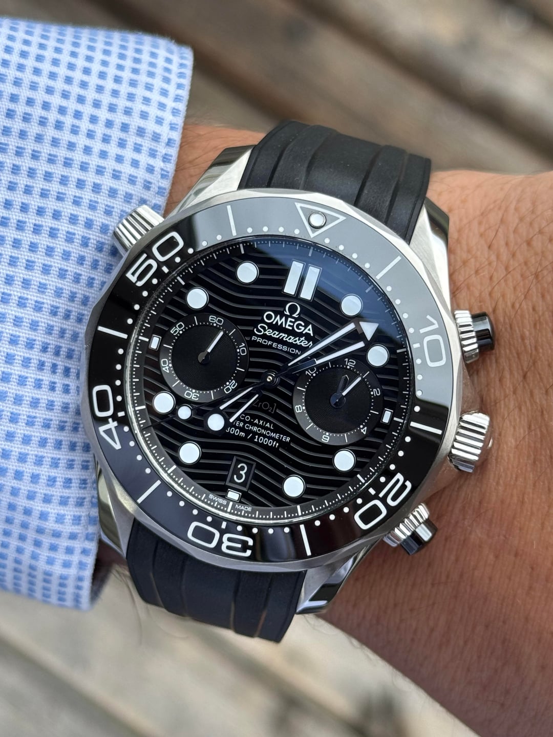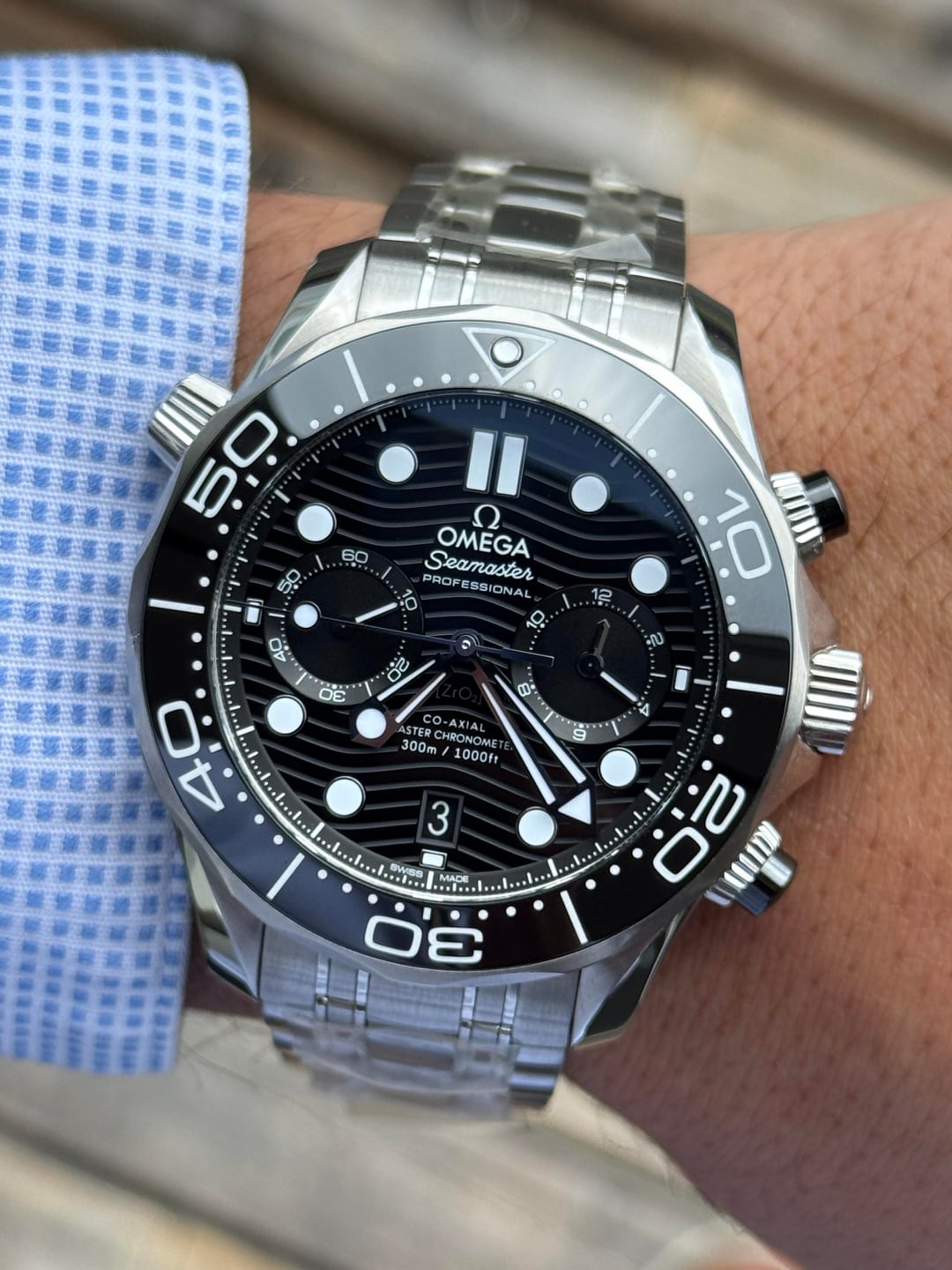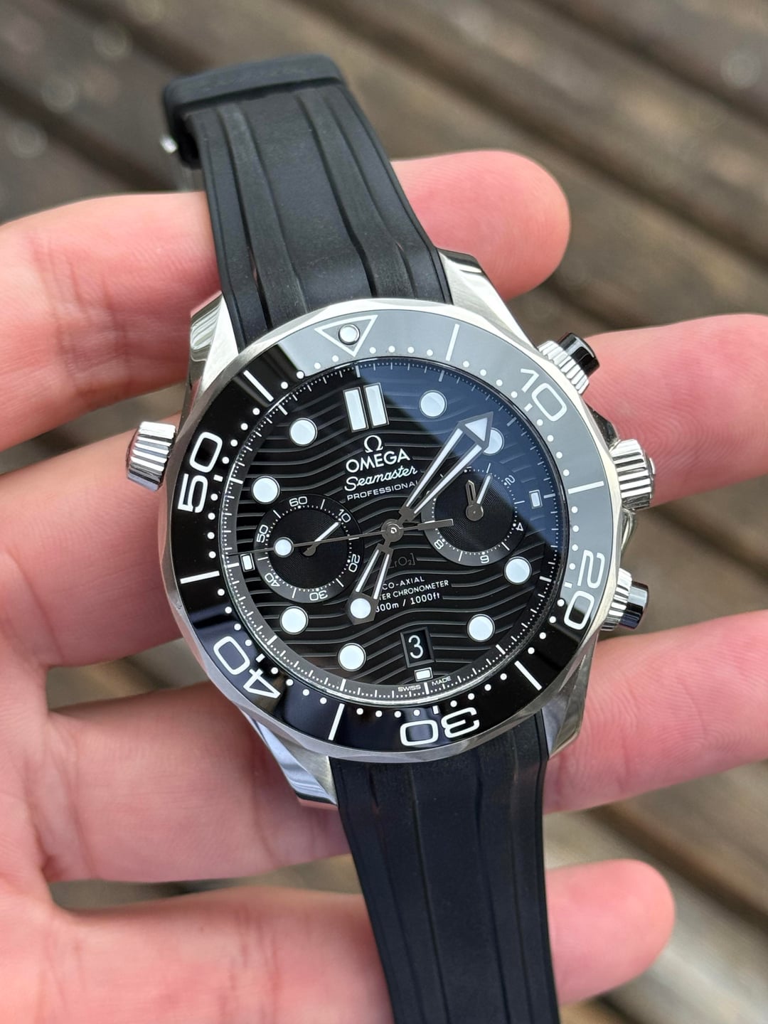 FOR SALE!!! Omga Seamaster Professional Diver 300m Chrono 210.30.44.51.01.001 Full Set Watch Specs: 44mm Stainless Steel Fits 8.25 inch wrist at most Msrp: 9,600 Full set with rubber strap (undated Card) Condition: nice previously owned condition with only light marks. Bracelet still has stickers. Price: 6️⃣,0️⃣5️⃣0️⃣ Shipped! (Bankwire only, WA State residents are subject to sales tax) IG: porcellojewelers Email: [email protected]