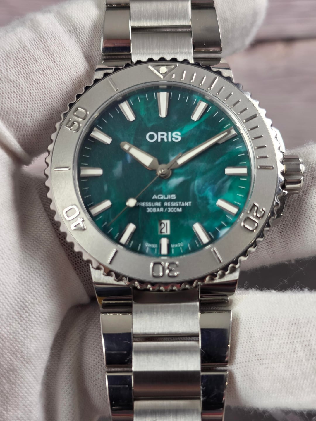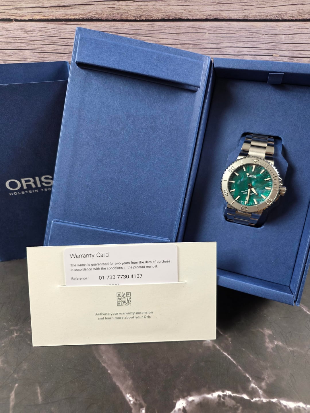 For sale today: Oris X Bracenet Aquis Ref: 01 733 7730 4137-07 8 24 05PEB Size: 43.5mm Very Good Pre-Owned Condition • Crystal is clean • Bezel is clean • Minor wear on the case • Minor wear on bracelet and polished sides • Minor wear on the clasp Includes: Box, warranty card, and hangtag. Asking: $1,250 + label Ships from NJ (CONUS only) Zelle preferred, PayPal & Venmo FF accepted. Additional pictures and references available upon request. NJ buyers are subject to sales tax.