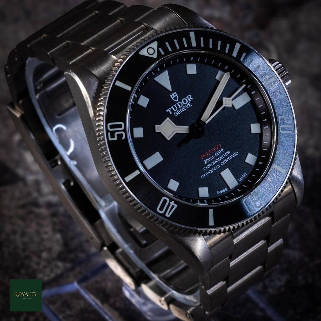 Tudor Pelagos 39 Titanium 25407N Case: 39mm Condition: This timepiece is in very good overall condition. The crystal is clean, and the bezel is flawless. The watch has been worn and enjoyed, specifically showing light marks on the bracelet & very lightly visible marks on the lugs which are the result of strap changes. These marks are cosmetic in nature and do not affect the structural integrity or performance of the watch. It is a fantastic option for a buyer looking for a watch they can wear daily without fear of putting the first scratch on it. Accessories: This offering is a **Complete Full Set**, ensuring the new owner receives everything that came from the factory: * Original **Tudor Double Box** (Inner and Outer). * **Warranty Card dated 2023** (Still under Tudor 5-Year Transferable Guarantee). * **Instruction Manuals**. * **Full Links** for the titanium bracelet. * **Two (2) OEM Rubber Straps**: The sale includes the additional rubber strap package provided by Tudor (Standard rubber strap + extension piece) with the titanium end-links. The Tudor Pelagos 39 is widely regarded as the "Goldilocks" of modern dive watches. Bridging the gap between technical divers and urban sophistication, the Reference 25407N offers a versatile 39mm case crafted from Grade 2 Titanium. Unlike its matte-finished siblings, the Pelagos 39 features a striking sunray satin finish on both the bezel and dial, giving it a dynamic play of light that elevates it from a pure tool watch to a luxury statement. Powered by the COSC-certified Manufacture Calibre MT5400 and equipped with the revolutionary "T-fit" clasp, this timepiece represents the pinnacle of Tudor’s modern engineering. $4️⃣0️⃣5️⃣0️⃣ + 🏷️ MSRP: \~5.25k Shipping available to anywhere in CONUS. Shop with confidence, many references available and authenticity guaranteed! NY residents subject to sales tax without resale certificate IG: royalty.timepieces Timestamp: [https://imgur.com/f878f9C](https://imgur.com/f878f9C)