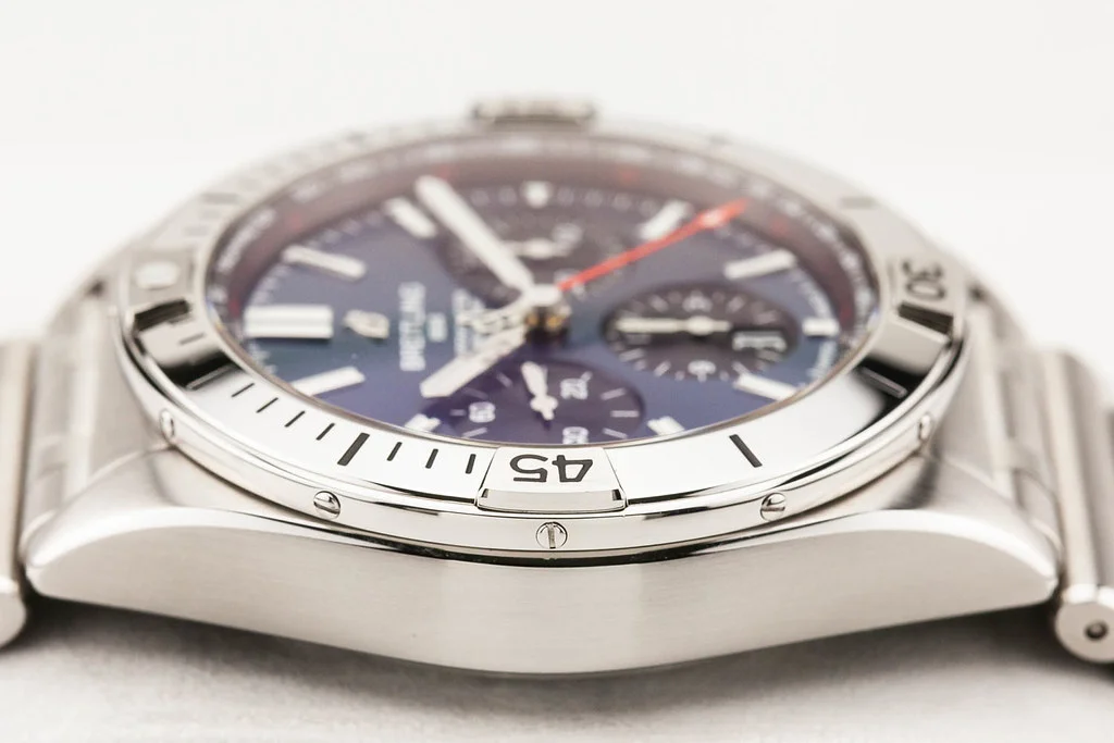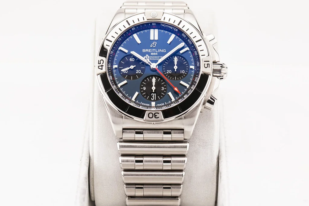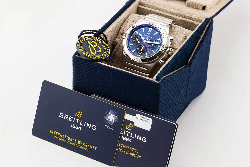 Up for sale is a mint condition Breitling Chronomat B01 42 Blue Dial on Bracelet, reference # AB0134101C1A1. It comes complete with all boxes, papers, booklets, hang tag and Breitling Warranty Card dated February 2025.