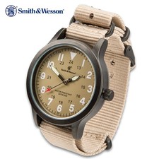 | Smith & Wesson Tan Canvas Tactical Military Case 30m Water Resistant Watch kolourco (95233) |