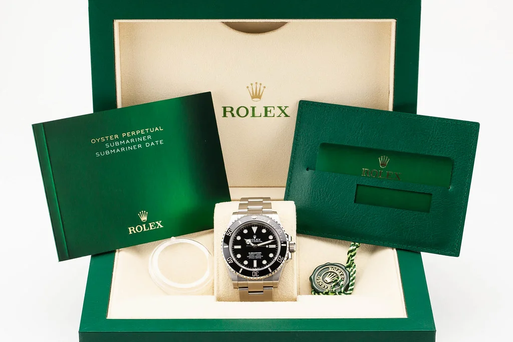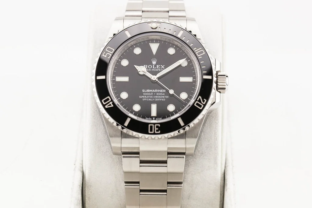 Up for sale is an excellent condition Rolex Submariner No Date 41mm Ceramic, reference # 124060. It comes complete with all boxes, papers, booklets, hang tag, bezel guard and Rolex Warranty Card dated September 2024.