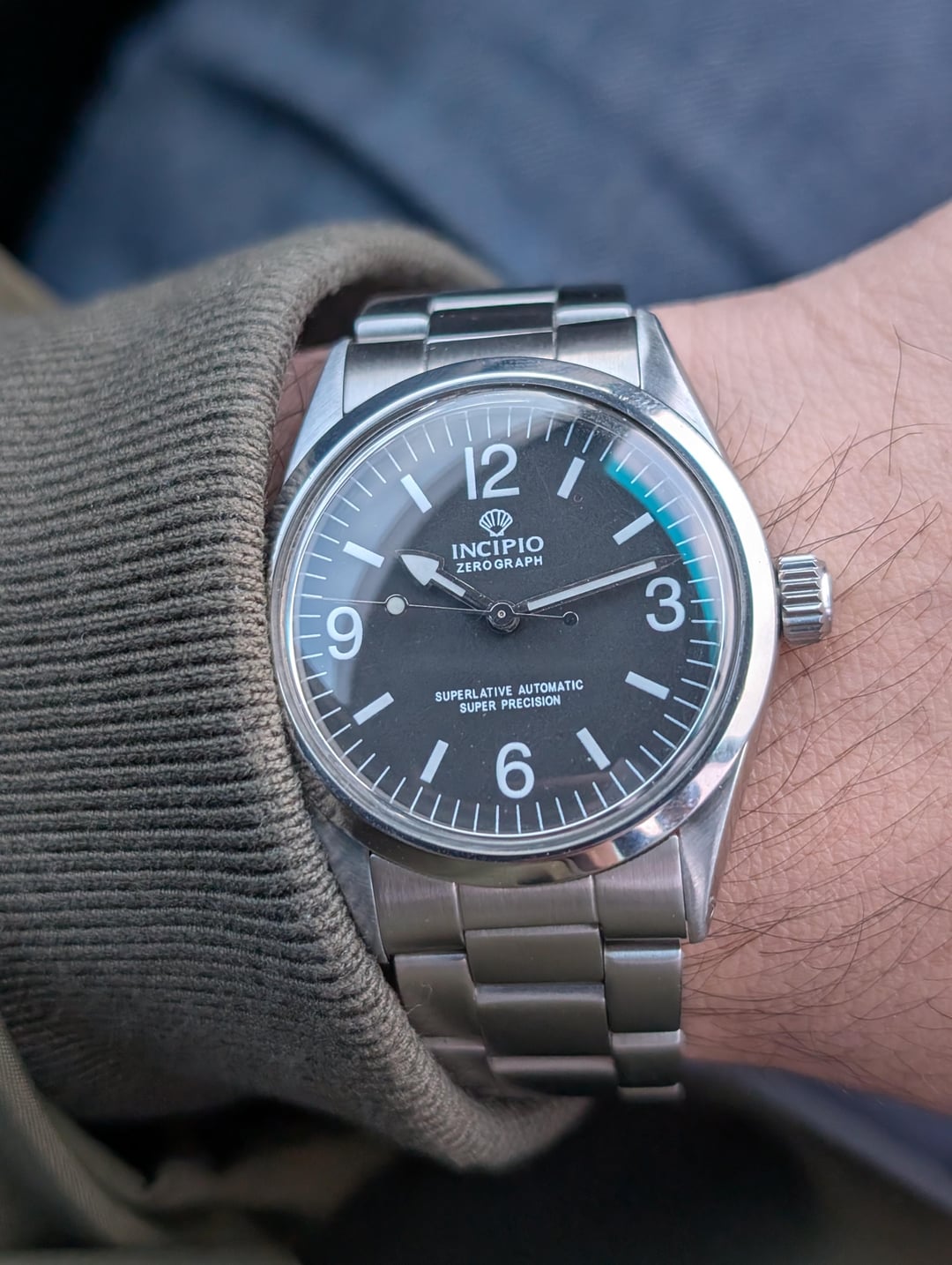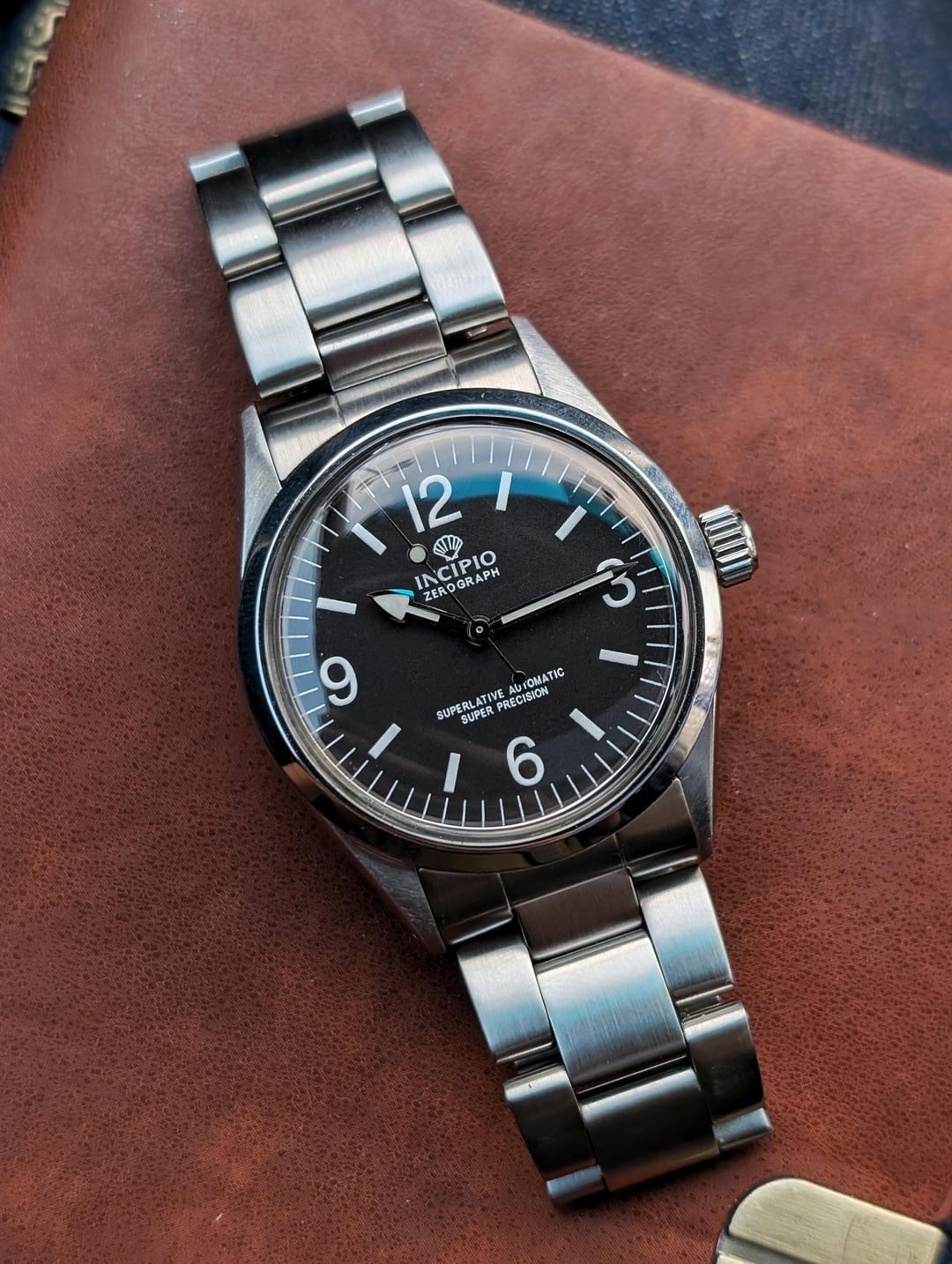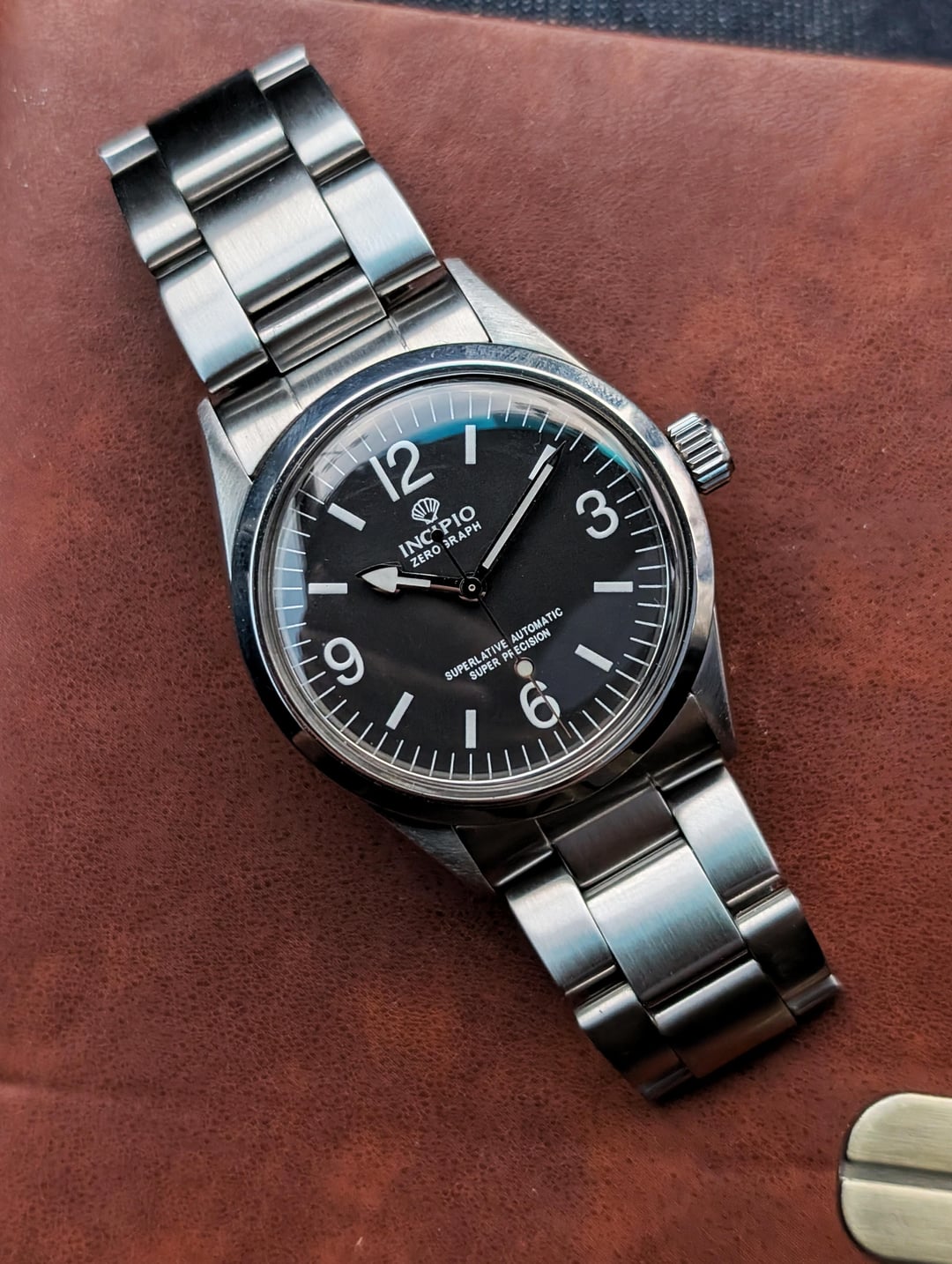 Greetings watchexchange! Up for sale is a stunning JDM Incipio Zerograph, which is a Ranger homage offered by the Begin magazine in the late '90s. The watch is powered by a trusty 2824 which has been serviced and runs incredibly strong. The watch is polished and is in beautiful condition keeping the original geometry intact. The watch is priced to sell at $399 paid via Zelle or PayPal FF and shipped via UPS. PLEASE allow 3-5 business days of your payment for the watch to be shipped out [Timestamp](https://drive.google.com/file/d/1048q0br0kvcNm3KGGoF3dyuAvQNp_SOU/view?usp=drivesdk) Be sure to reach out to me if you have any questions or require additional photographs or information, I entertain requests for custom timestamps. Thanks for looking.