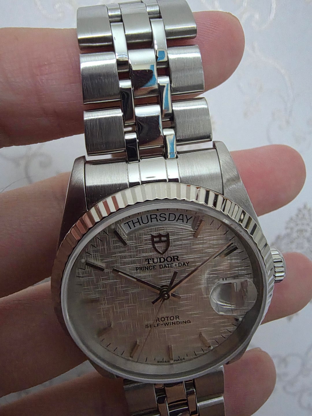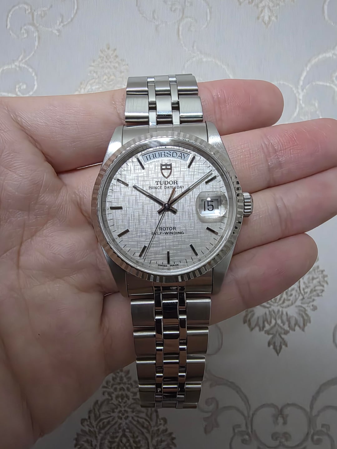 Up for sale is a 2002 Tudor Prince Date Day 76214 Linen Dial Full Set. It comes with a warranty paper dated 2002, a 2012 official service record by Rolex, a Tudor box, and a Tudor booklet. It is fully functional and running at +1s/d. **The watch was recently serviced.** ***The authenticity is 100% guaranteed – the watch has been thoroughly inspected and authenticated prior to listing. Feel free to check out my website*** **Tonneau Atelier** ***in my profile.*** Price: $2999. Payment via PayPal or Wise is preferred. Watch is in Chongqing (known as the Cyberpunk City), China. I will pay the customs duties or tariffs for buyers located in United States. Watches will be shipped via FedEx, which delivers to your doorstep in just four days. Worldwide shipping and I am willing to ship this watch anywhere with buyers paying for the shipping. If you really love this watch and pay fast, I will offer free shipping! Feel free to ask for any custom timestamps or videos, I am happy to send them. Please don't hesitate to ask me any questions, thank you! I am able to source all kinds of Tudors, please feel free to PM me! Timestamp: [https://imgur.com/a/uF38lyl](https://imgur.com/a/uF38lyl)