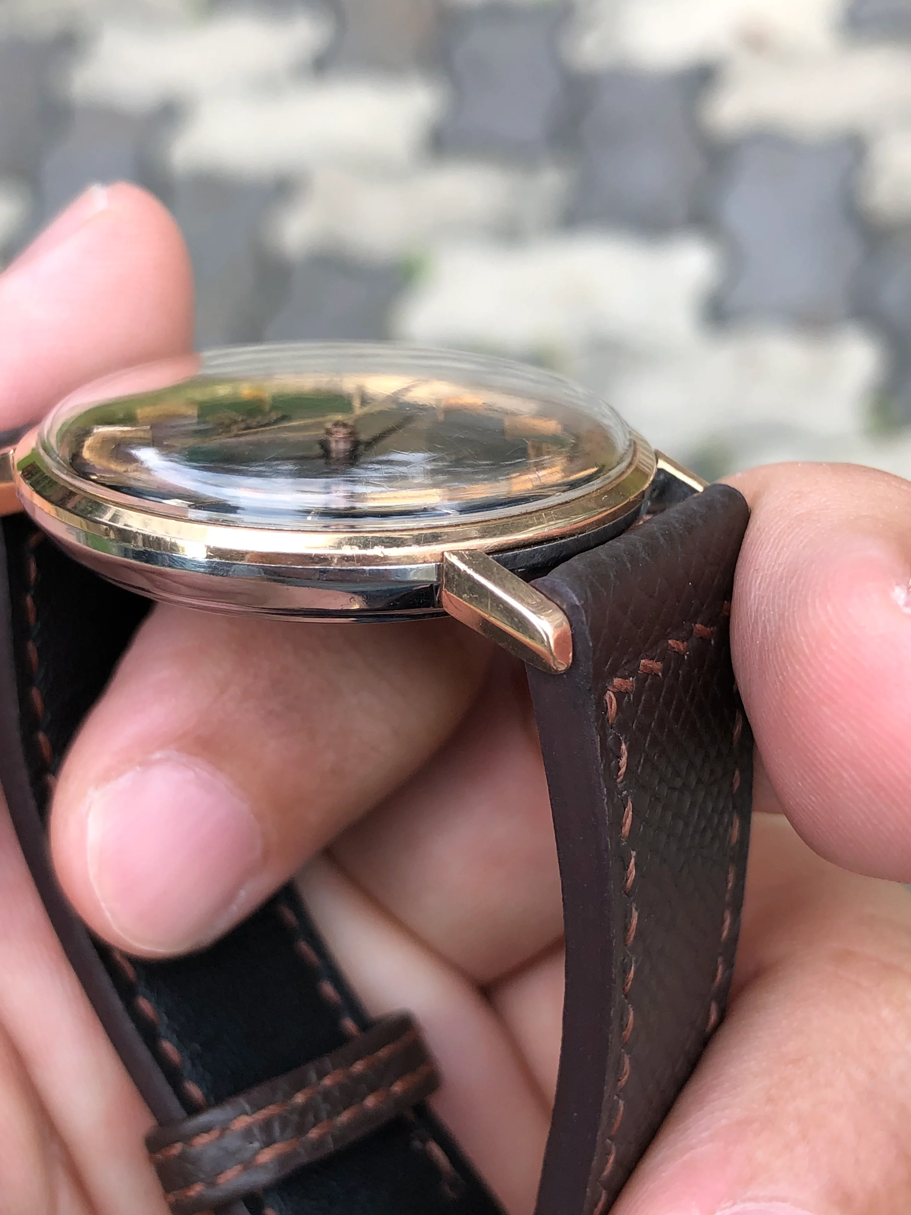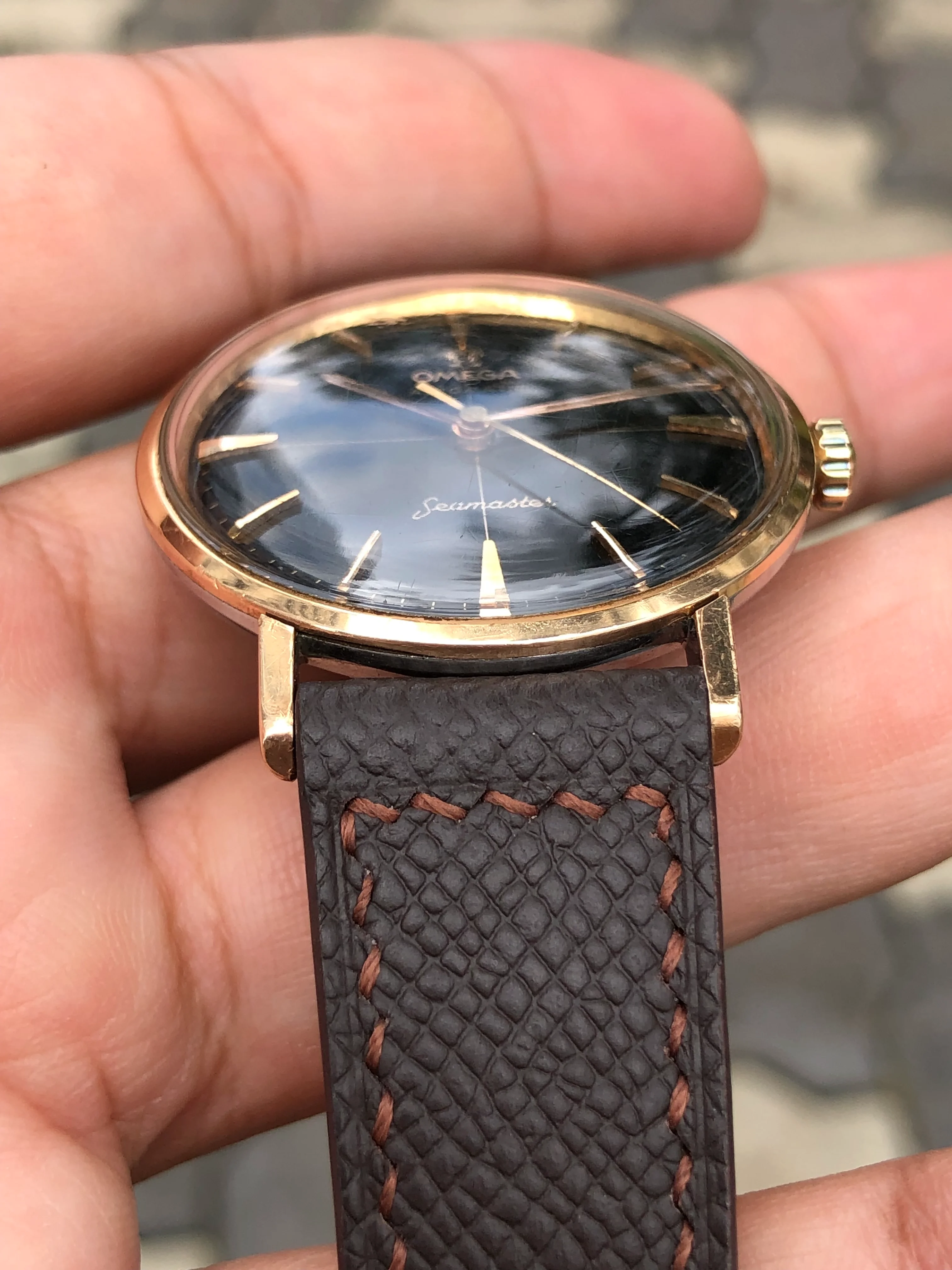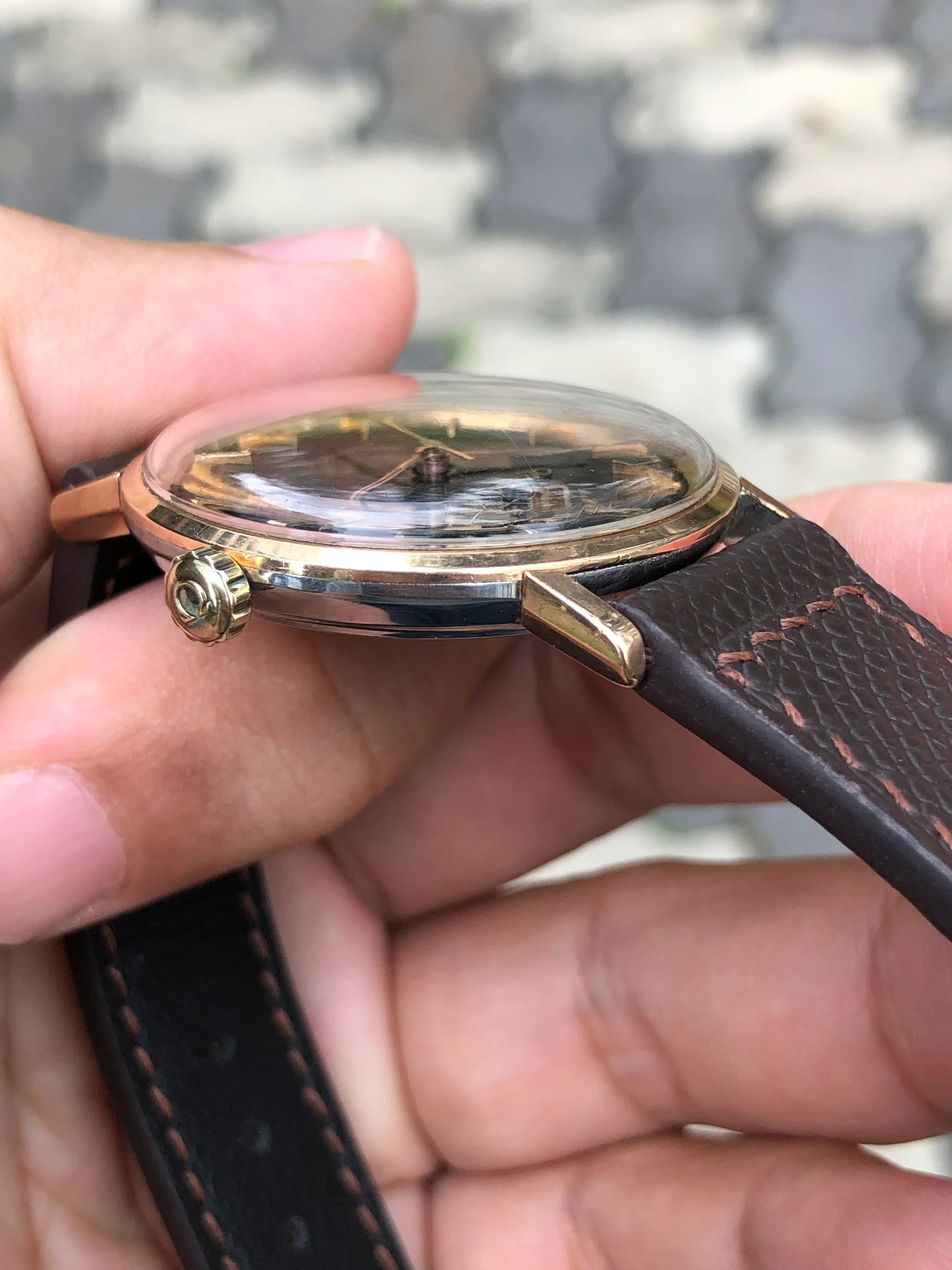 - Strap: Brand new hand-made brown leather strap, original Omega gold-plated buckle.