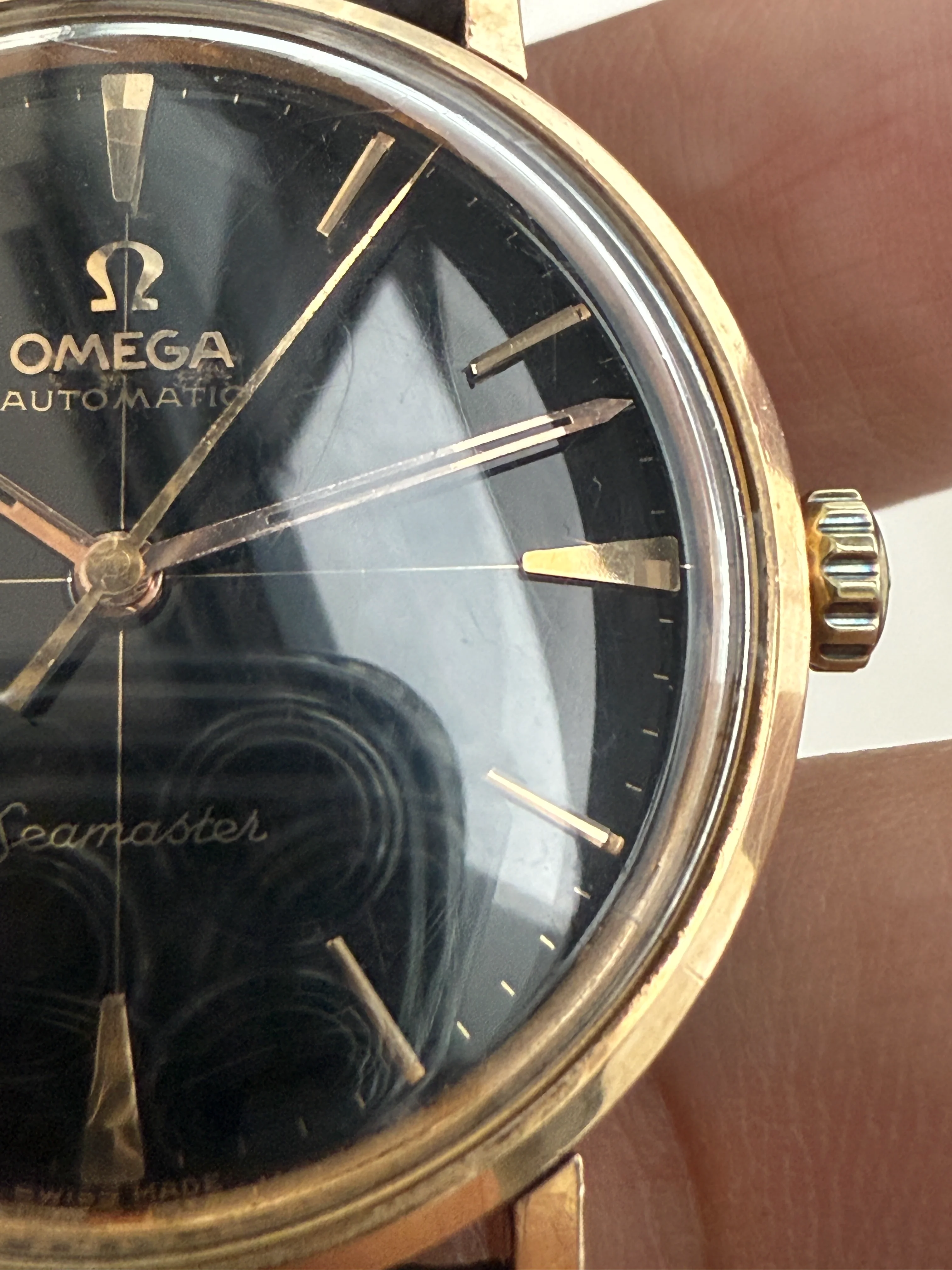 - Glass: Original with Omega logo, hairline scratches all over.