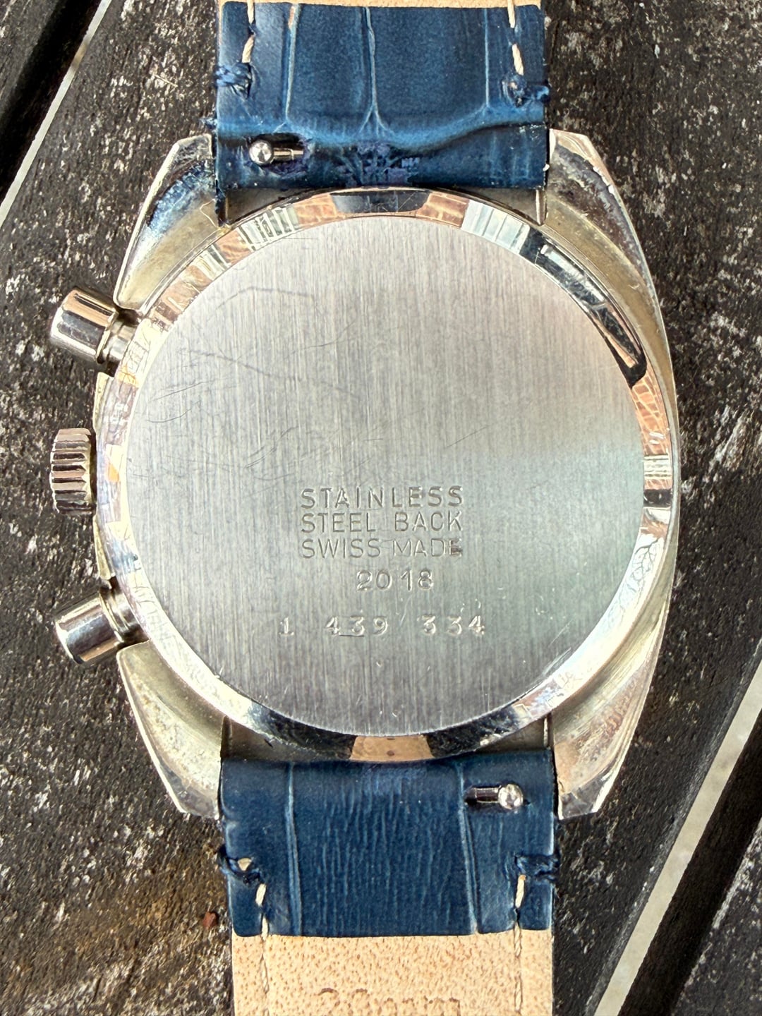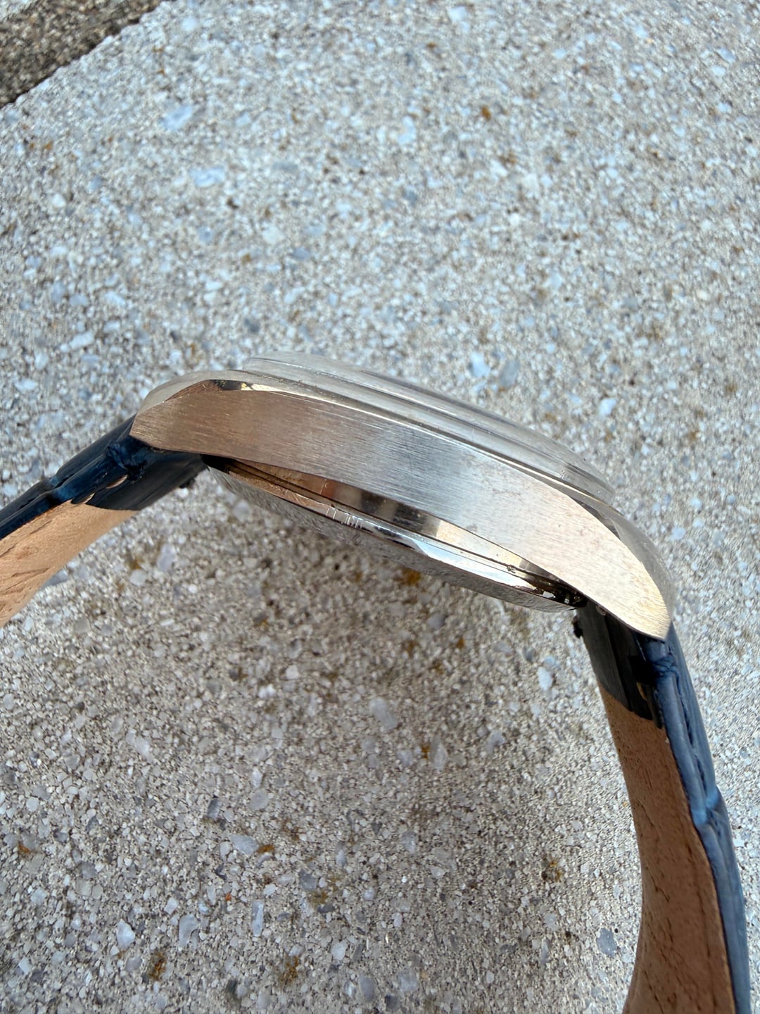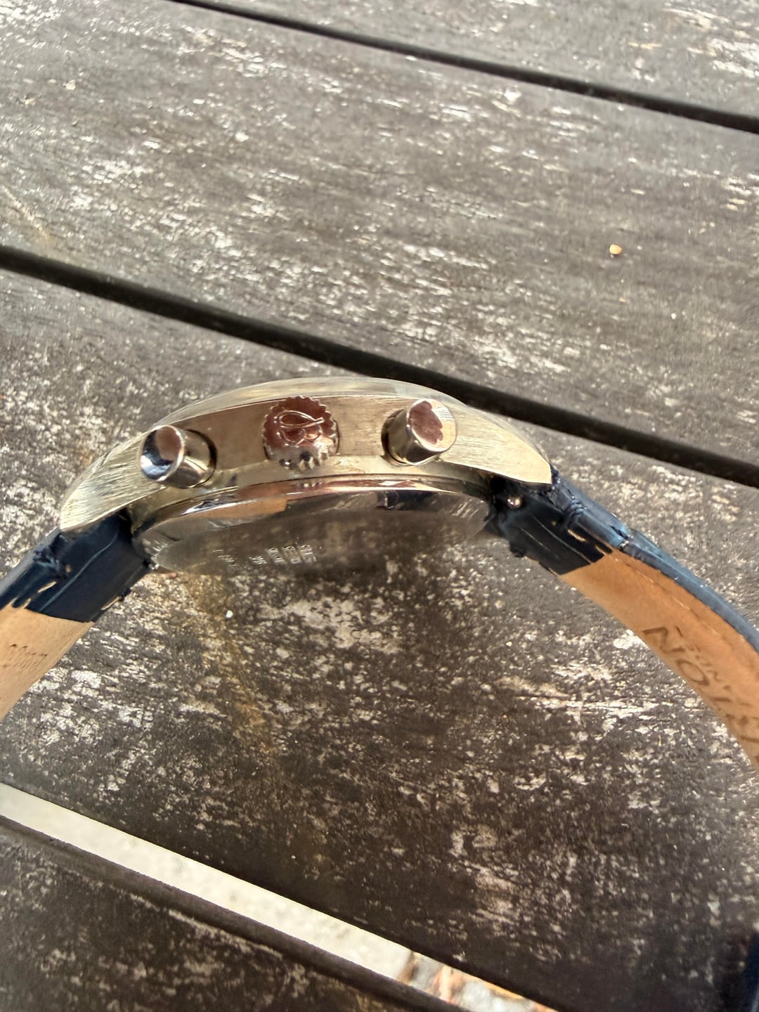 Welcome to Starry Seconds! Please feel free to also check out our other listings! PLEASE COMMENT BEFORE PM. Condition: Fantastic for its age — light wear consistent with regular use and crystal is clean. Keeps time well and chronograph functions perfectly but service history unknown. It appears unpolished with minor scratching throughout. Brushing is in perfect condition and edges are sharp. The dial is and the pictures don't do it justice. It plays with the light beautifully. The roulette date wheel is also a nice touch. The valjoux 7734 runs great with no issues. Asking a slightly negotiable $1300 USD SHIPPED through paypal FF or Zelle. CONUS ONLY Comps on Chrono24 are $2k+ I have a standing offer of $1200 cash from a store that I do routine deals with, so I am pretty firm.