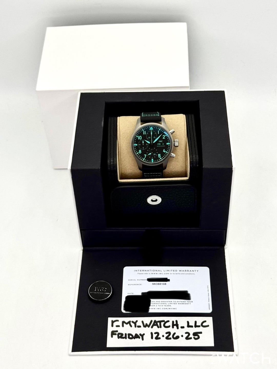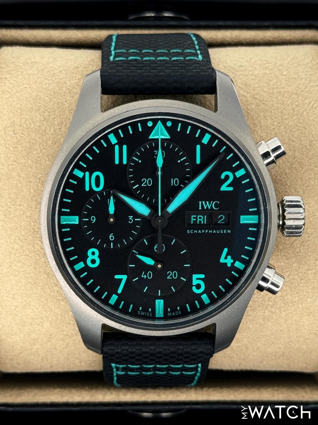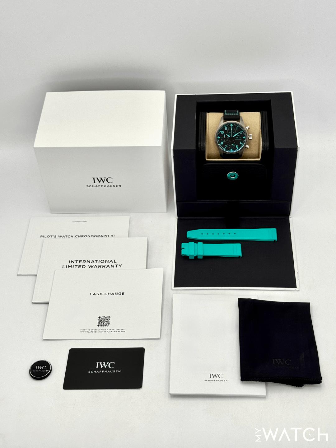 🔵**2023 IWC Pilot’s Chronograph “Mercedes-AMG PETRONAS Formula One” 41mm IW388108 Titanium Black Dial** 🔵**TRADE or SELL us your luxury watch, all brands considered. Message me details.** **Includes the following:** **✔️Original IWC boxed** **✔️Box and Papers - Yes** **✔️Warranty card dated May 2023** **✔️Manual and Warranty booklets** **✔️Cleaning Cloth and Hang Tag** **✔️Adjustable Black Textile and Turquoise Rubber Straps included** **✔️EASX-Change System** **✔️Watch is in excellent overall condition. Please see photos for details.** **✔️Trades welcome** Business Name: **My Watch LLC** LOCATION: Oak Park, Michigan ✔️[MyWatchLLC.com](http://mywatchllc.com/) for current inventory ✔️Google Business Listing [https://g.co/kgs/Cmd6FPW](https://g.co/kgs/Cmd6FPW) ✔️Business Hours M-F 9-6 ✔️Facetime/Video chat/calls welcome to view the watch interested. ✔️Contact: 248-422-0909 via text or call for quickest response. 🟢TERMS: Visit [MyWatchLLC.Com](http://mywatchllc.com/) for payments accepted 🟢REFERENCES/REVIEWS: We are well reviewed on all platforms from google, trust pilot, rolexforums, additionally we have 300+ reference in multiple FaceBook watch groups, reference checks welcome. 🟢SHIPPING: If you are not local, we offer Fully Insured FedEx overnight shipping in the USA for a fee. International shipping available. [https://mywatchllc.com/products/2023-iwc-pilots-chronograph-41mm-iw388108-titanium-black-dial](https://mywatchllc.com/products/2023-iwc-pilots-chronograph-41mm-iw388108-titanium-black-dial)