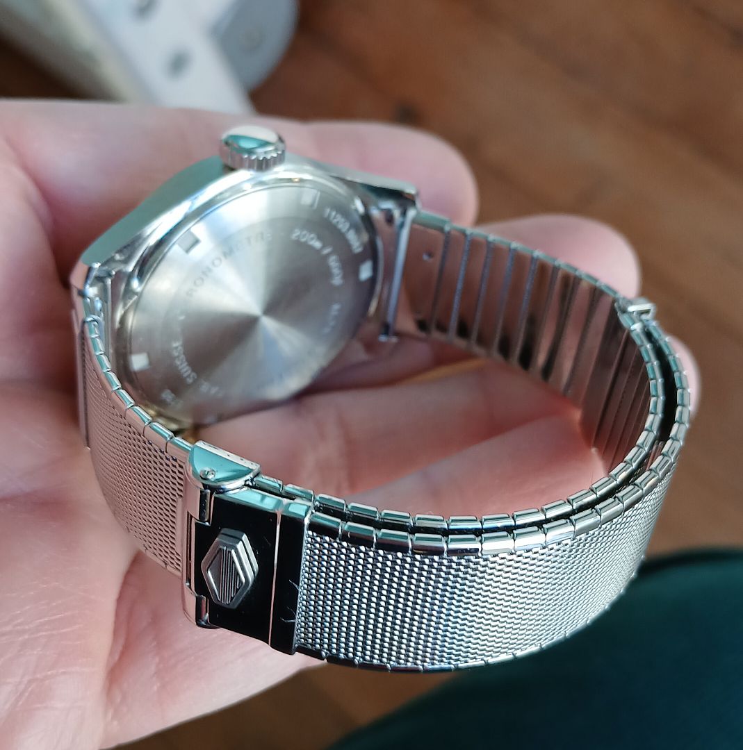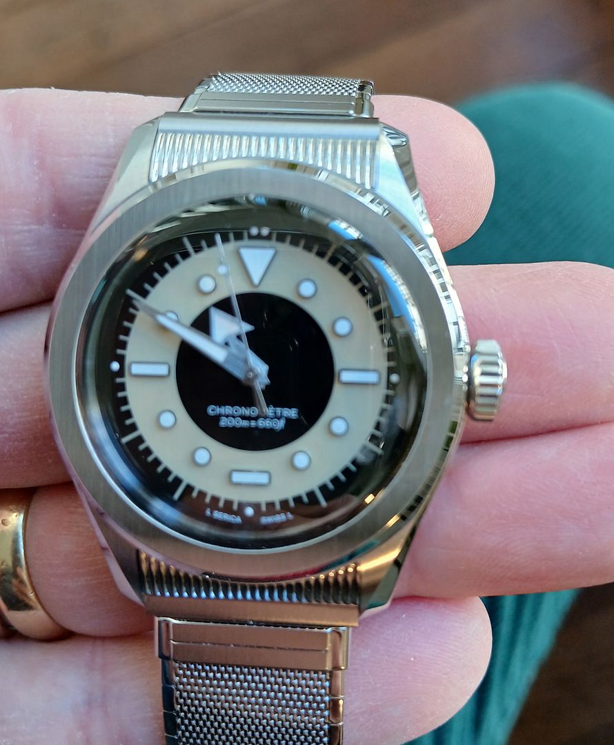 Déballage de début d'année à pric broc : la Serica 6190 TXD au cadran tuxedo, qui vient de sortir en 150 exemplaires et deja épuisée, avec les pièces de bouts et le nouveau bracelet acier expedition. Set complet avec le Bonklip d'prigine, porté une semaine.