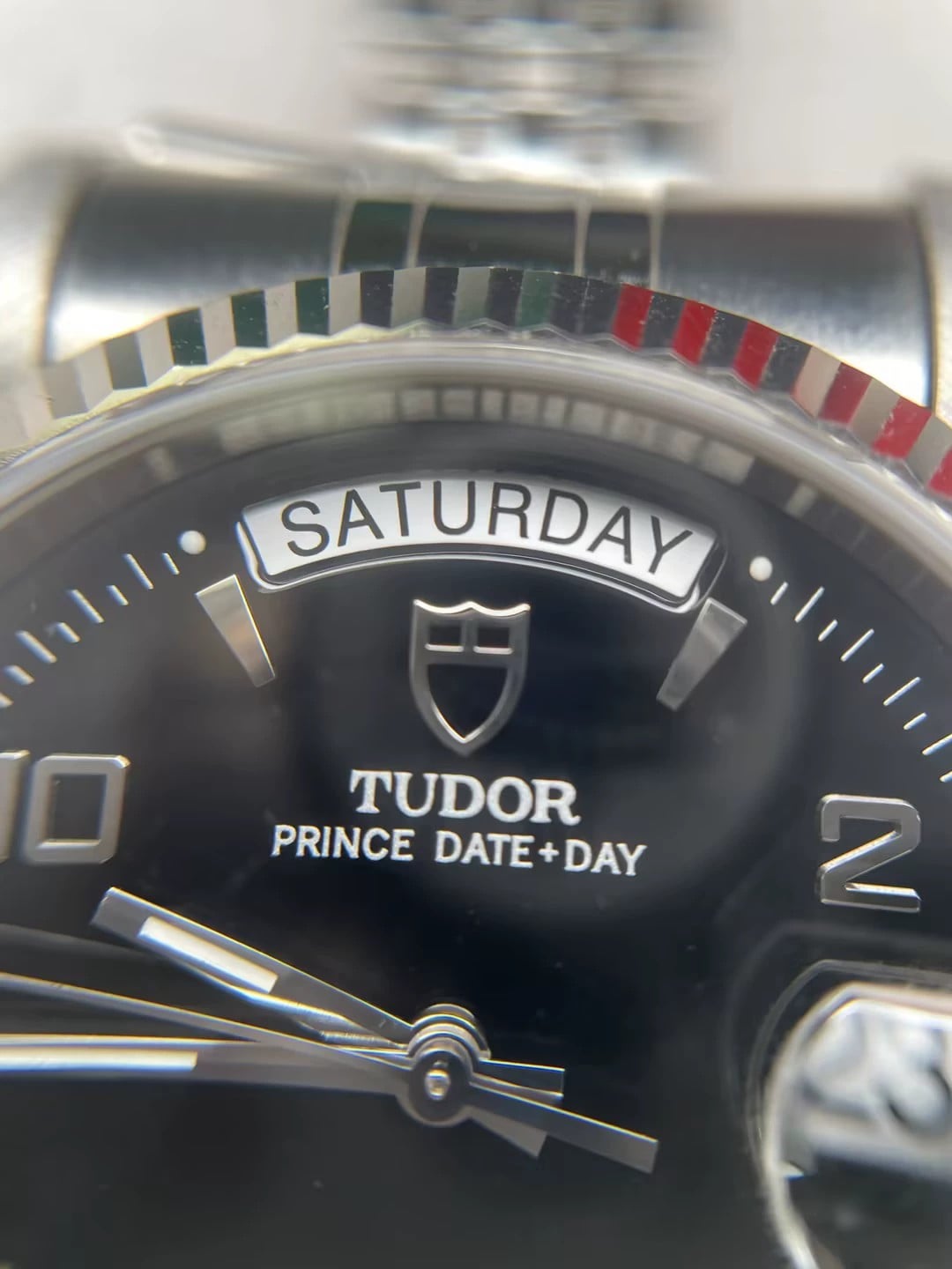 | TUDOR Prince Day Date 76214 10P diamond blackDial Automatic Men's Watch I#142463 aonohappa (9946) |