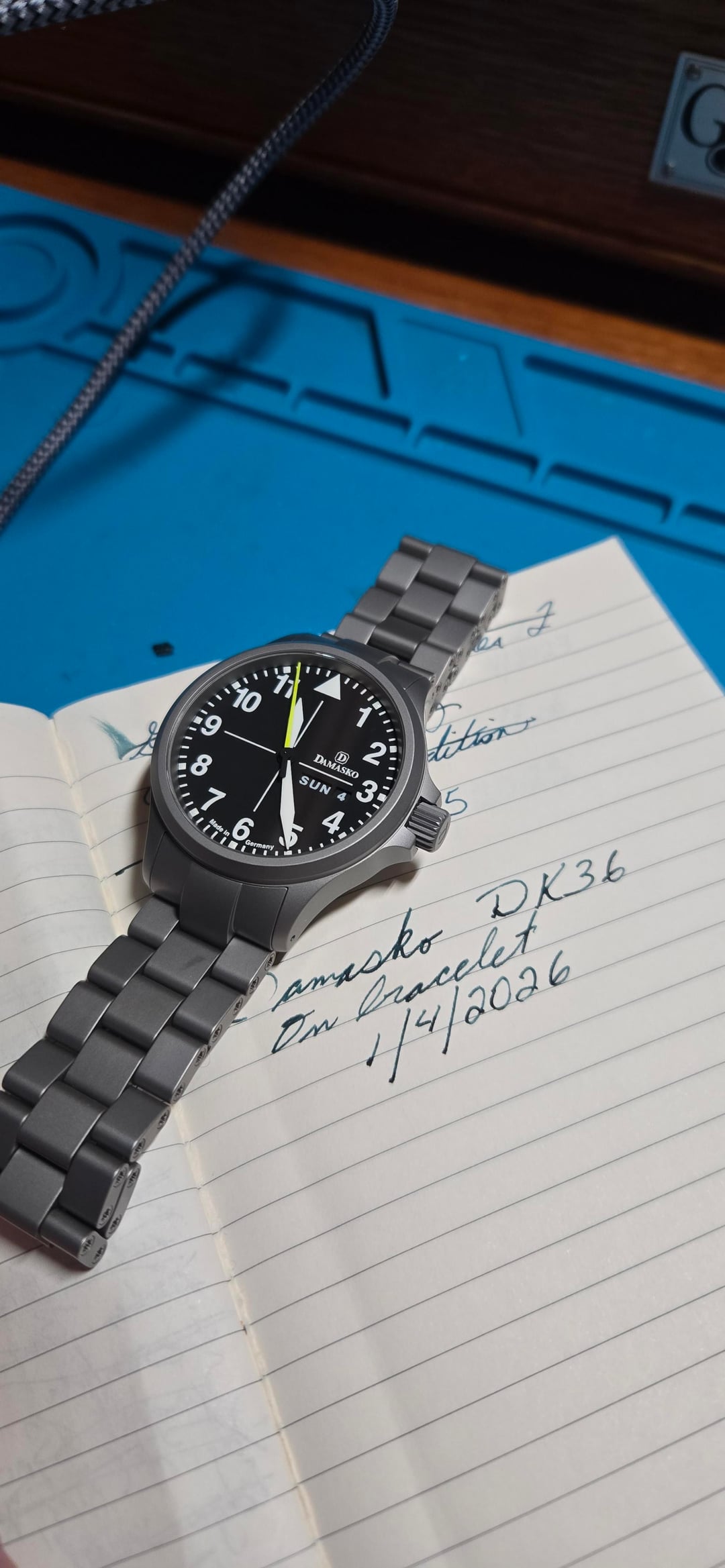 [WTS/WTT] Damasko DK 36 on bracelet. Up for sale is my Damasko DK36, one of the most no-nonsense, overbuilt everyday tool watches you can buy without wandering into tacticool cosplay territory. If you know Damasko, you already know the deal: this thing is engineered first, flexed never. The watch Model: Damasko DK36 Case: Ice-hardened stainless steel (significantly more scratch-resistant than standard 316L) Size: ~40mm diameter, ~12mm thick Movement: Damasko in-house A26-3 automatic Complications: Day / Date Crystal: Sapphire (inside and out anti-reflective) Water resistance: 100m Dial: Matte black, high-contrast Arabic numerals, excellent legibility Lume: Strong and functional (tool watch, not a glow stick contest) Crown: Screw-down, buttery smooth Bracelet: Original Damasko bracelet (very solid, no rattle) Condition Very good overall. Normal light wear consistent with use, but thanks to the ice-hardened case it still presents extremely clean. No deep dings or drama. Crystal is excellent. What’s included Watch Original Damasko bracelet Box & papers (full set) Why this watch This is a “use it and stop worrying” watch. Matte, glare-free, absurdly tough, and legible in any condition. No polished nonsense. No hype tax. Just German over-engineering doing what it does best. If you like Sinn but want something more proprietary… if you’re tired of babying watches… if you want something that looks better the harder it lives — this is it. Think of this as the actual tool watch version of an IWC MarkXX Photoshttps https://imgur.com/a/Vfh2DGe