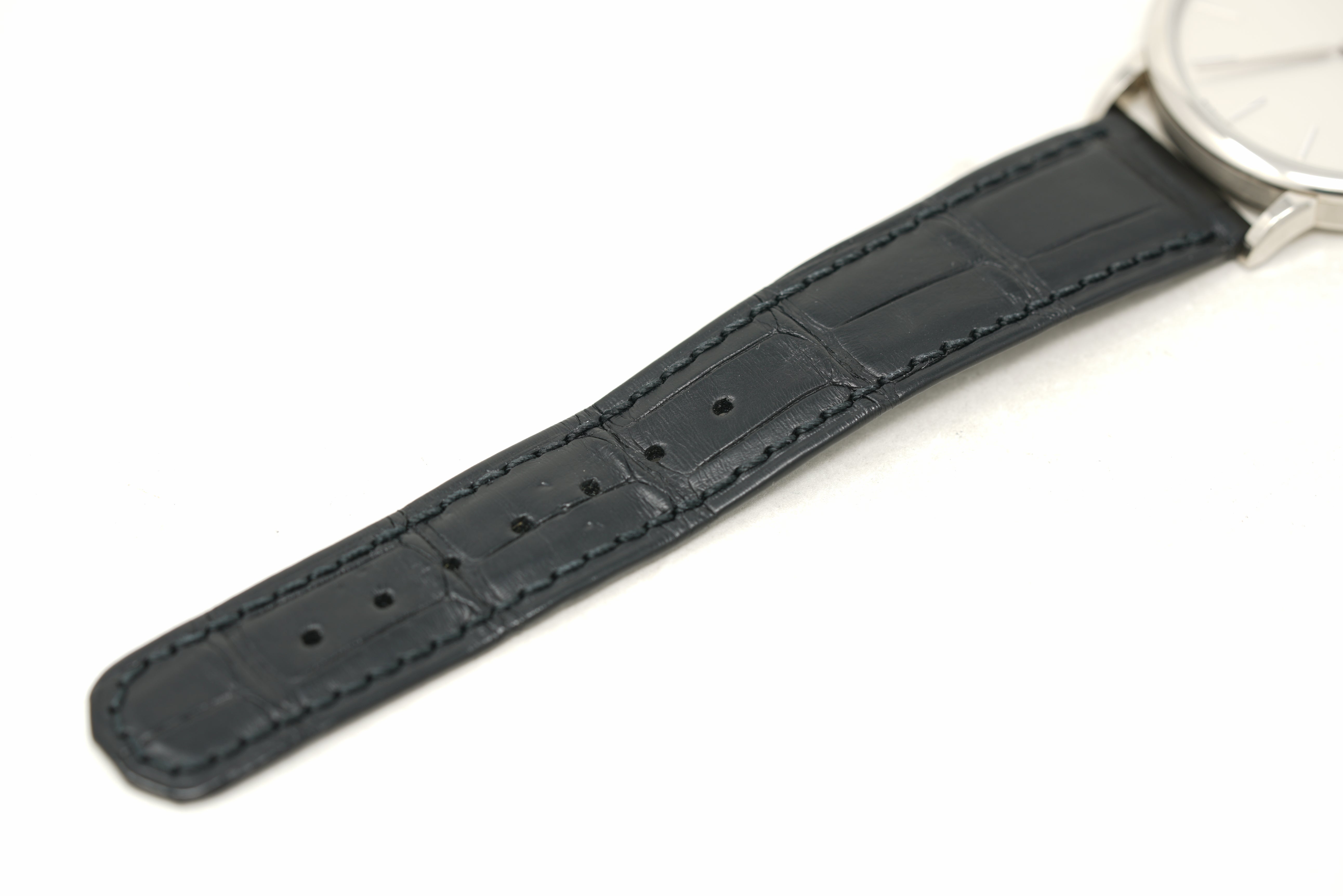 Strap/Bracelet: Two Black Leather Straps in Short or Regular Length