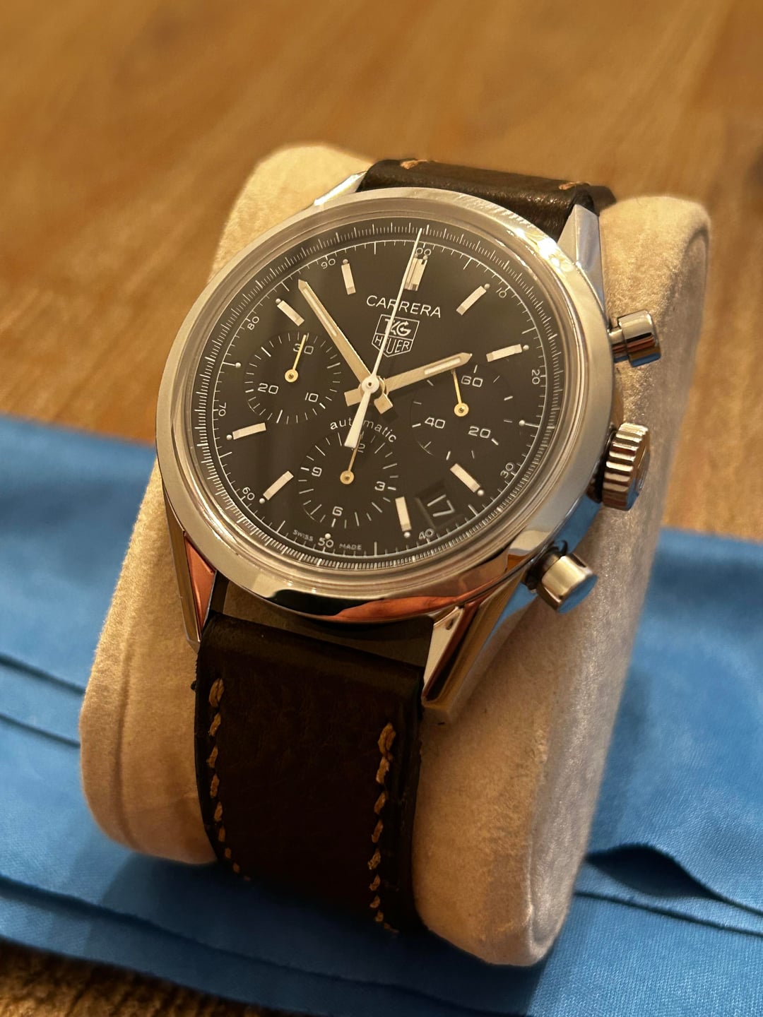 Hello all, Selling my Tag Carrera Chrono (CV2111-0) for $2000. It is a well worn example, but no major faults to speak of. Some light scratches and very small dings. Crystal is perfect. Previous ownership took good care of the watch and so did I over my year ownership. Service history is unknown. Comes with watch only on this leather strap. Let’s get this to a new home today!