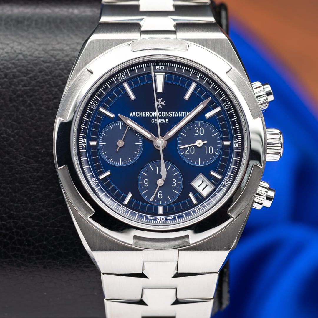 VACHERON CONSTANTIN Overseas Chronograph Blue Dial 5520V/210A-B148 Price: $36,900 The Vacheron Constantin Overseas Chronograph is a hallmark of refined sport-luxury watchmaking. Featuring a brilliant sunburst blue dial and a robust 42.5mm stainless steel case, this model exudes a sophisticated yet sporty presence. The in-house column wheel chronograph movement offers both technical excellence and aesthetic elegance, visible through its exhibition caseback. This watch is in excellent condition. Please review the pictures closely for accuracy. The photos are taken with a high-powered macro lens and may show imperfections not typically seen with the human eye. Includes: \- Double Box \- Warranty Card (2024) \- Additional blue leather and blue rubber straps We deal with absolute transparency and welcome any communication regarding the watch. The watch ships overnight priority FedEx fully insured within 2 business days of purchase. Charlotte, NC