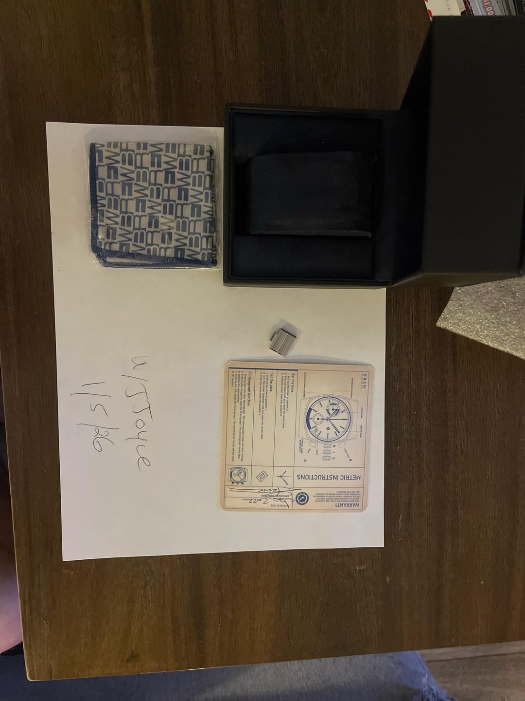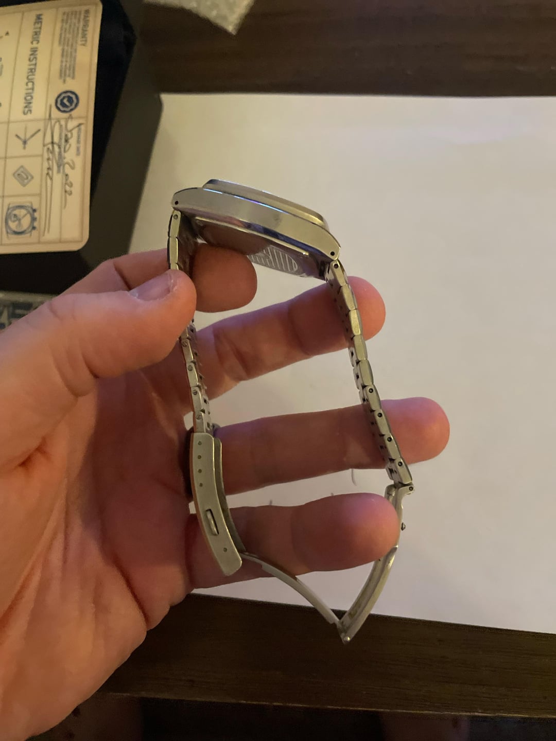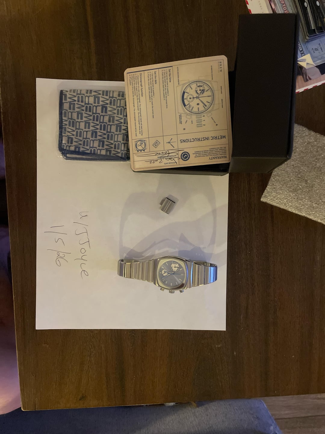 Hi there, The final watch I have for sale is a limited edition Brew Metric released in 2022. There were only a limited amount of this version of the watch made - please find the information on this dial variant here: https://wornandwound.com/brew-refreshes-the-metric-with-three-new-dial-colors/ Mine includes the box, watch, warranty card (past warranty), and 2 extra links. This watch was worn quite a bit and has scratches on the bracelet. Otherwise it’s in solid condition, and is a great piece for those who like Brew. Shipping in the U.S. only. Please bring any questions my way!