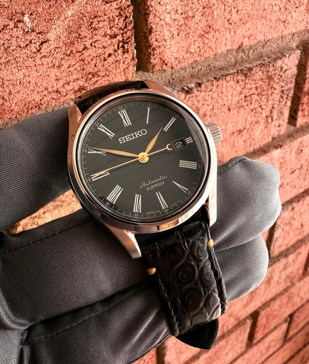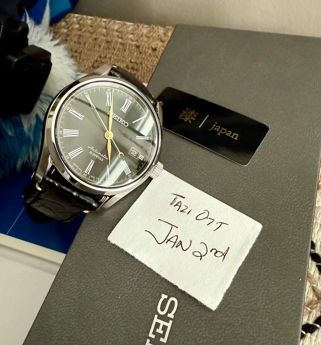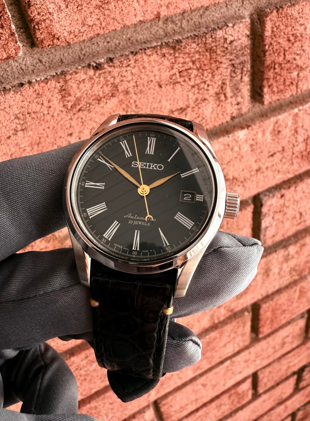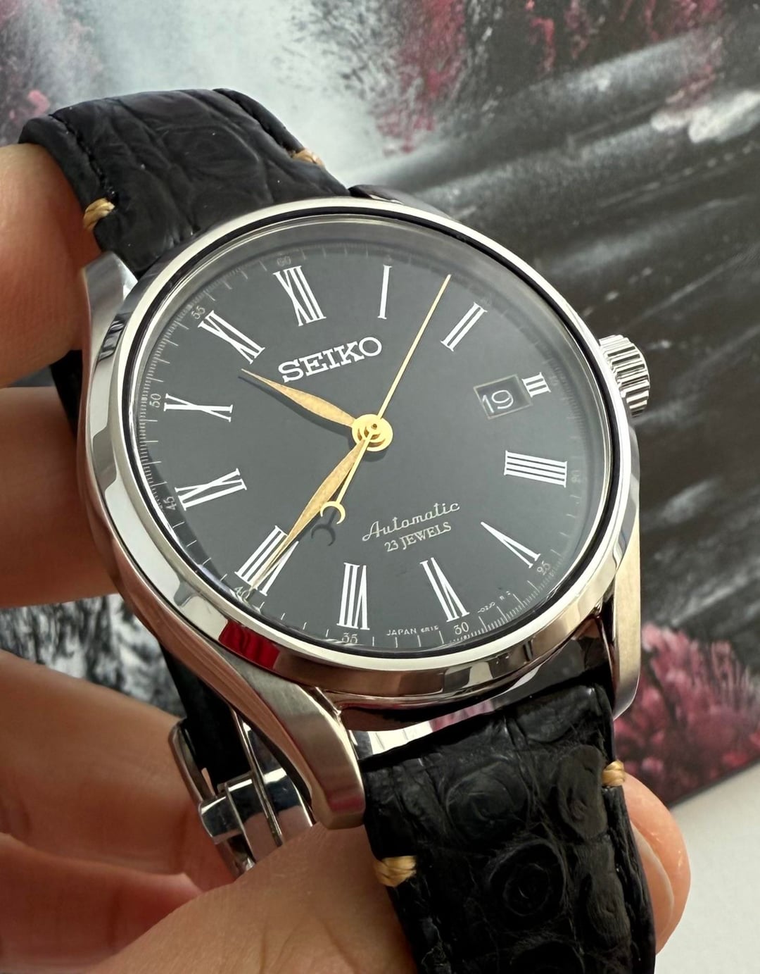 On offer here is the now discontinued SARX029. This watch represents the essence of seiko at a time where it delivered unmatched value in watchmaking. The handmade urushi lacquer dials are a sight to behold, where the depth of the deep black dial can’t be captured by my pedestrian photography skills. That said, some great pics and articles can be found in other reddit posts. The near magical dial provides an apt backdrop to the radiant powder gold hands. Lastly, the watch features a genuine crocodile strap, a feature only seen on Grand Seikos nowadays. The watch is accompanied by its original box and sleeve plus the manual only. No warranty card is included. I do not have a timegrapher and I have not timed the watch. The movement winds smooth and I have not observed any great variance in time keeping. This is a classic 40/20, 40mm case with 20mm lug width. Even with its dressy nature it does feature 100m of water resistance to serve as a daily. The watch Is in very good condition but given the high polish case, light scratching will be visible under scrutiny. There are no deep scratches, gouges and the crystal is clear. Watch ships out of Canada and is priced at $740 (USD) plus the cost of insured shipping. Payment is via paypal, transaction history or references needed. G&S or F&F accepted, all fees are on buyer.