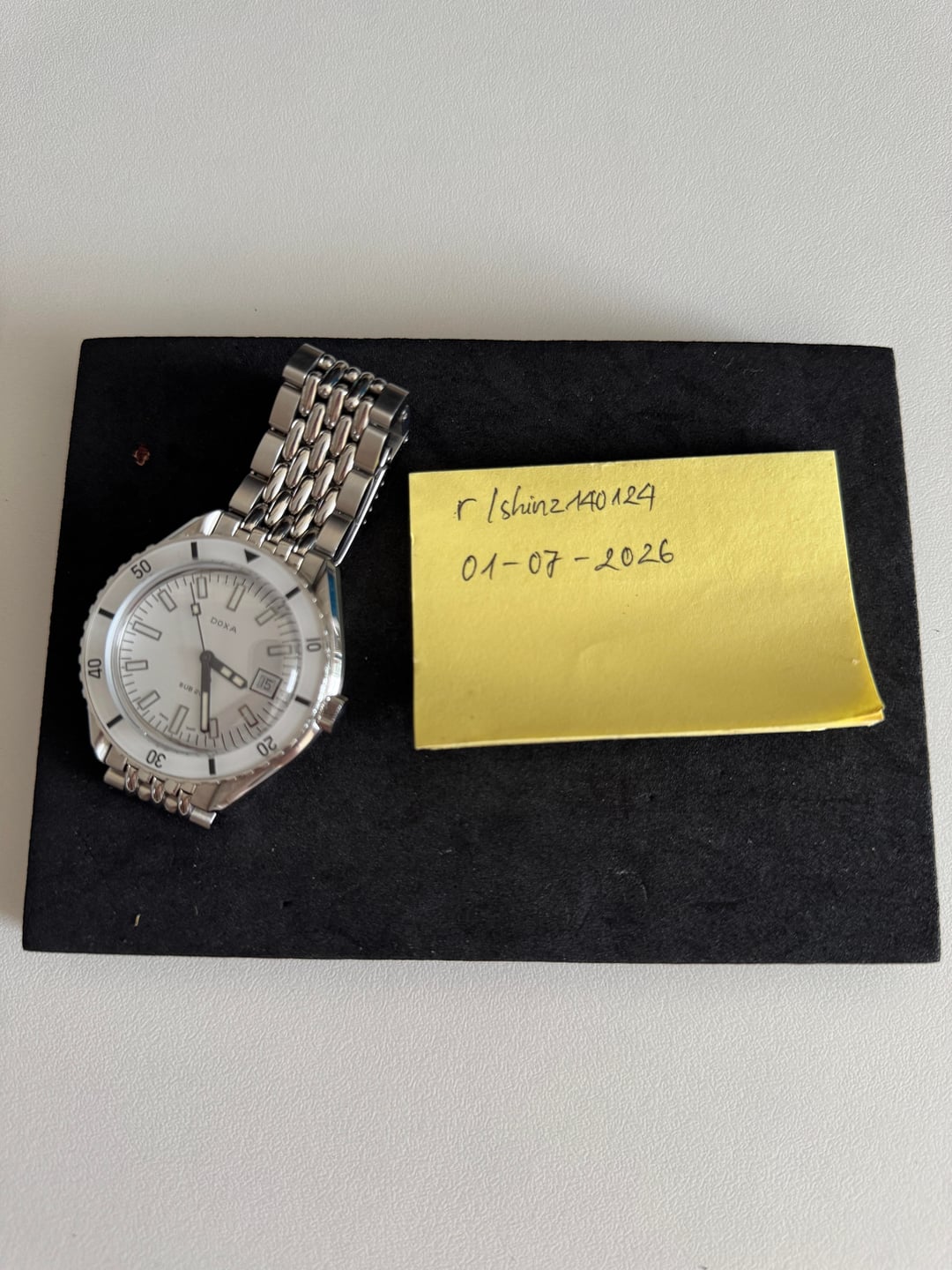 hi folks, Looking to sell Doxa Sub 200 Whitepearl Condition: Overall is mint 9/10, with few scratches on clasp on bracelet, otherwise it's clean. Accessories: Watch comes in full-kit. Its' 2025 set. Price: 999$ shipped by Fedex Payment: Paypal F&F or G&S (fee on buyer 🙏), or Wise/Revolut (preferred - lowest fee), or Zelle. I'm happy to do facetime / video call or provide reference check on other platforms. Cheers! Also not interested in low-ball offers, thus please don't waste both of our time.