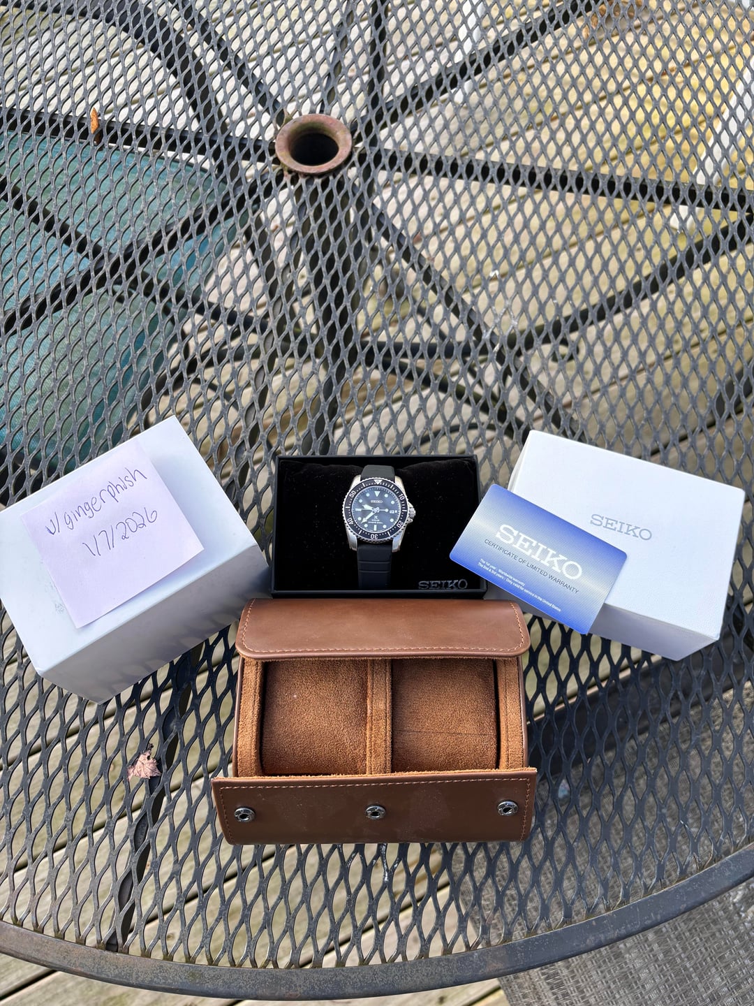 Hello all! Up for sale is my Seiko SNE573 that comes as a full kit with a free 2 watch travel roll. I bought it about a year ago to use as my daily but it never got much wrist time, especially after I bought my 556i. Watch is in fantastic condition with minimal signs of wear. The strap is unworn as I switched to a Barton silicone strap right away. As expected, watch runs about +5-10 seconds a month making it a great grab and go option. Selling for $225 shipped. More info and dimensions: https://www.seikowatches.com/middleeast-en/products/prospex/sne573