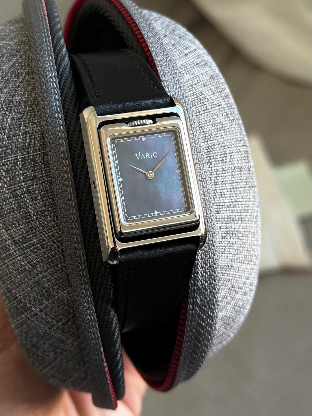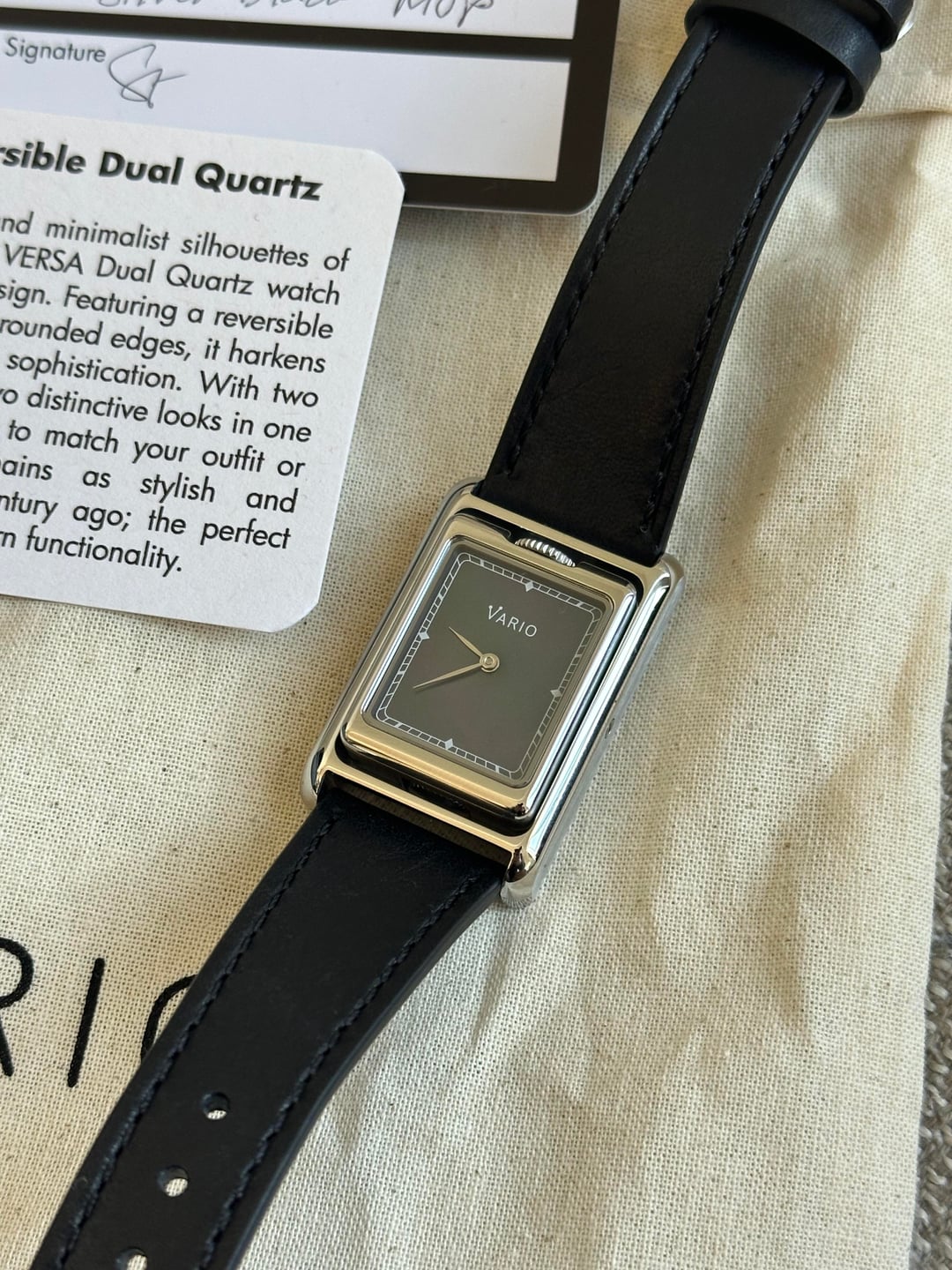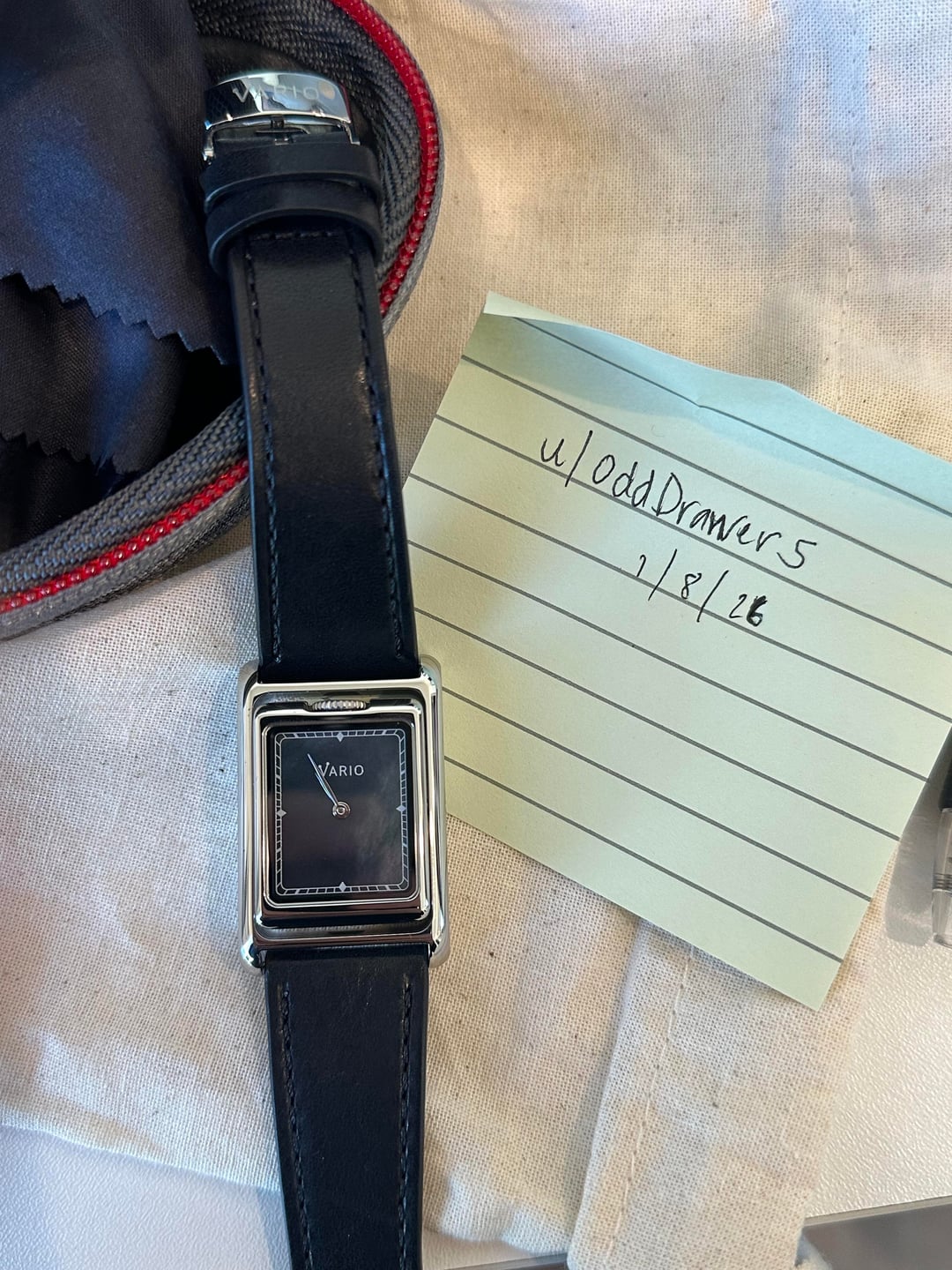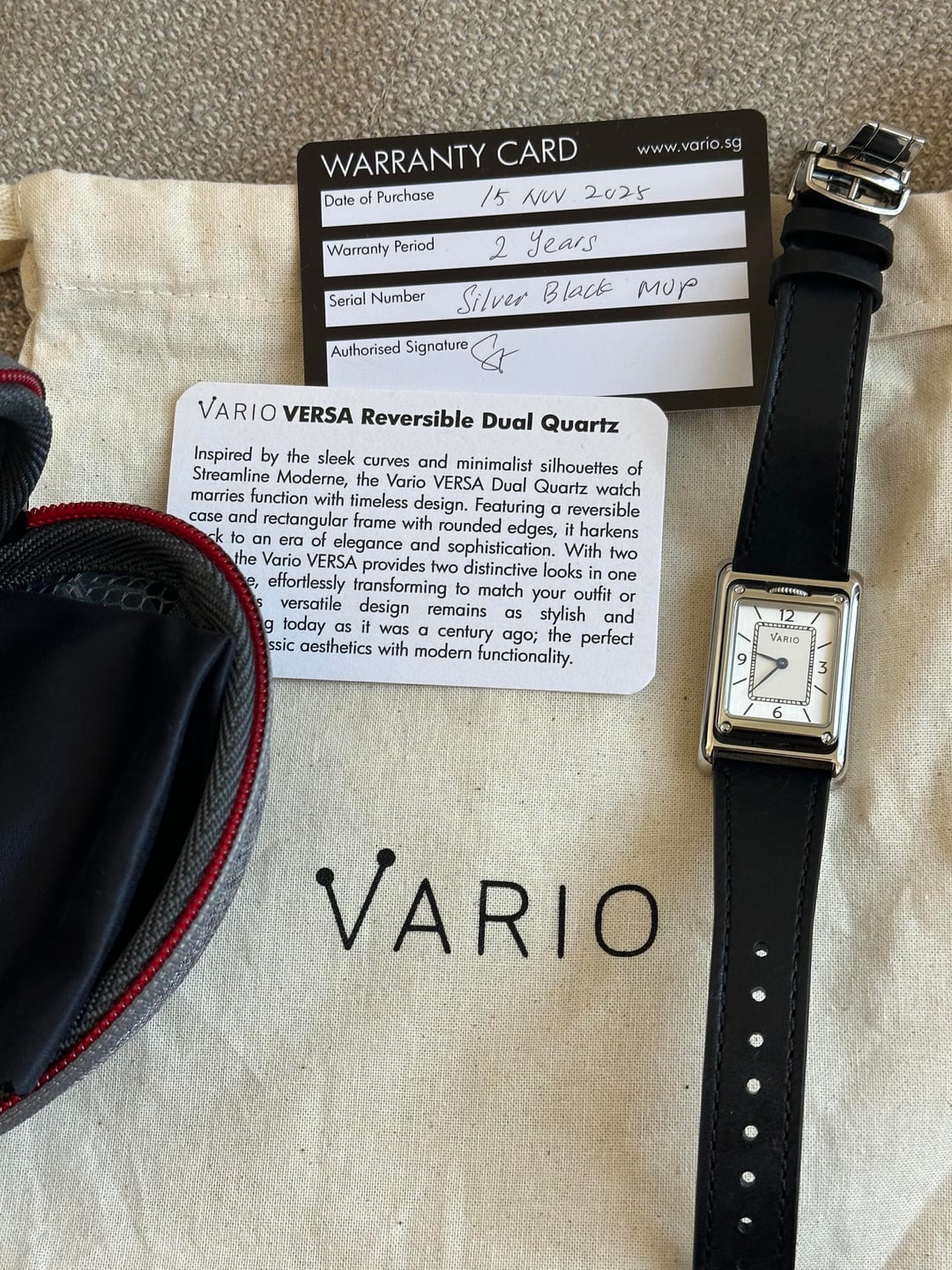 Hello! This watch is brand new, never worn outside. I saw it in person at a show and received it a couple weeks ago and just changed my mind. Beautiful piece and very unique. Pictures / Timestamp / Video: [https://imgur.com/a/vario-versa-5ELIpwf](https://imgur.com/a/vario-versa-5ELIpwf) * Received November 2025 direct from Vario in Singapore; warranty for 2 years * Quartz dual time: White Dial, Black MoP dial * Includes all original packaging (watch roll, bag, cards, strap, buckle) * Never worn / brand new **Asking $400 shipped CONUS**. Feel free to PM me with any questions. I accept PayPal FF, or you may add fees for G&S.