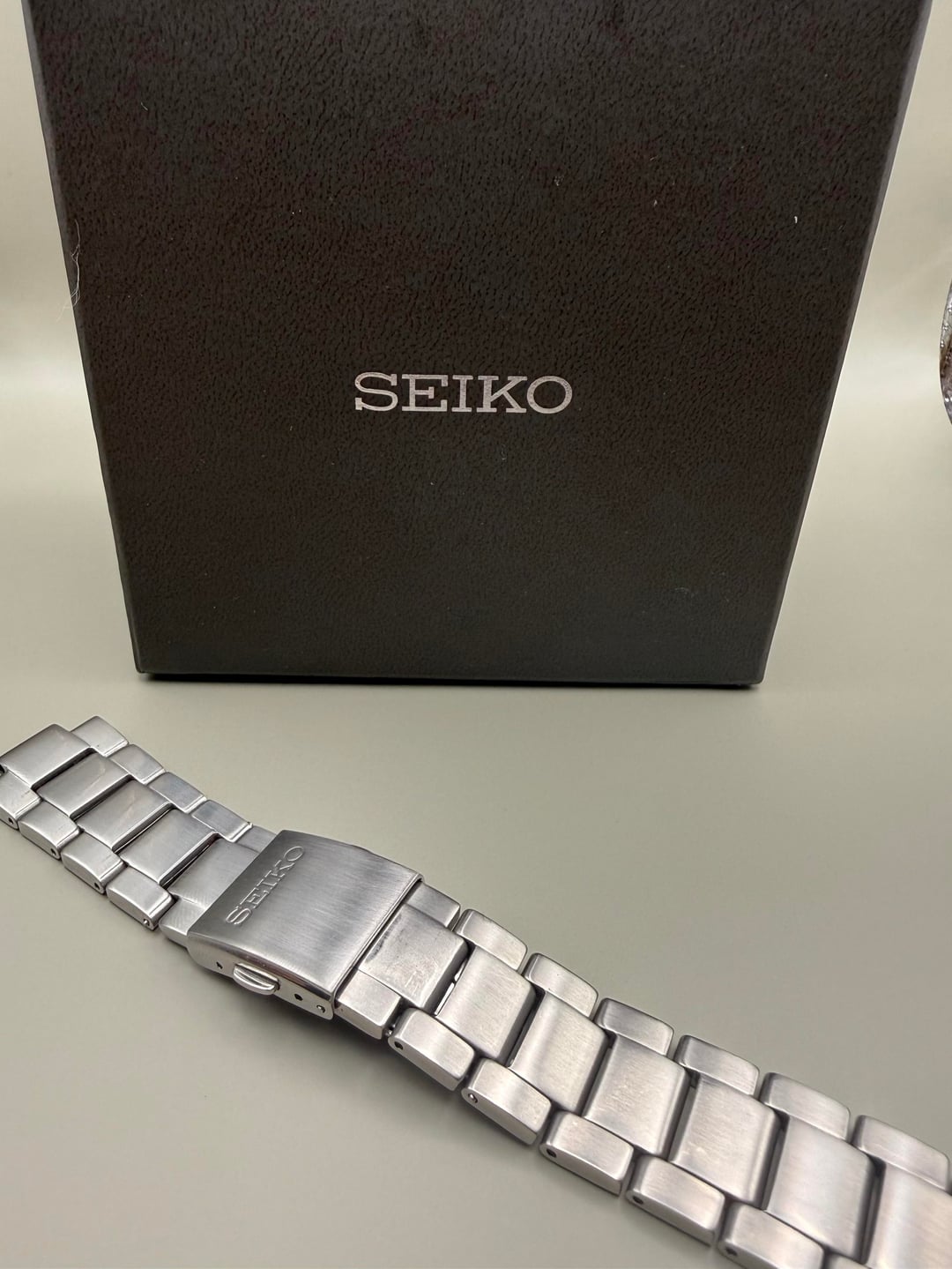 For sale is a Seiko SBPY085, a discontinued JDM solar chronograph with the sought-after panda dial configuration. The watch is powered by Seiko’s V175 solar chronograph movement and is running perfectly. Chronograph functions reset correctly and the watch holds charge as expected. Condition: Overall very good pre-owned condition. The case shows light surface wear consistent with careful use. Crystal is clean with no major scratches. Caseback shows normal hairline marks from wear. Please review photos closely as they form part of the description. Included: • Seiko SBPY085 head • Original Seiko stainless steel bracelet (full links) • Aftermarket black strap currently installed • Original Seiko box Details: • JDM reference SBPY085 (case code V175-0BJ0) • Solar-powered quartz chronograph • Panda textured dial and dark sub-dials • 10 bar water resistance • Made in Japan Price: $470 OBO + shipping Payment via PayPal Watch will ship promptly and securely. Please comment before PM. Happy to answer any questions and can FaceTime or call:)